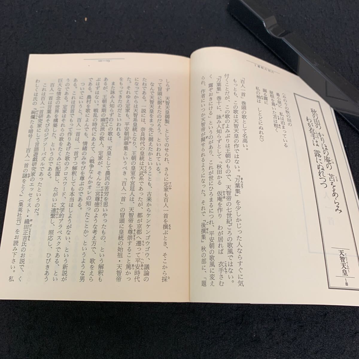 Jc-312/田辺聖子の 小倉百人一首/平成3年12月発行/角川書店/秋の田の かりほの庵の 苫をあらみ わが衣手は 露にぬれつつ/L9/707018 [浏览原始页面]