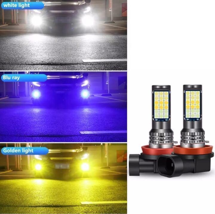 3色切り替え式 LED フォグランプ バルブ H8 H11 H16 ホワイト&イエロー&ブルー