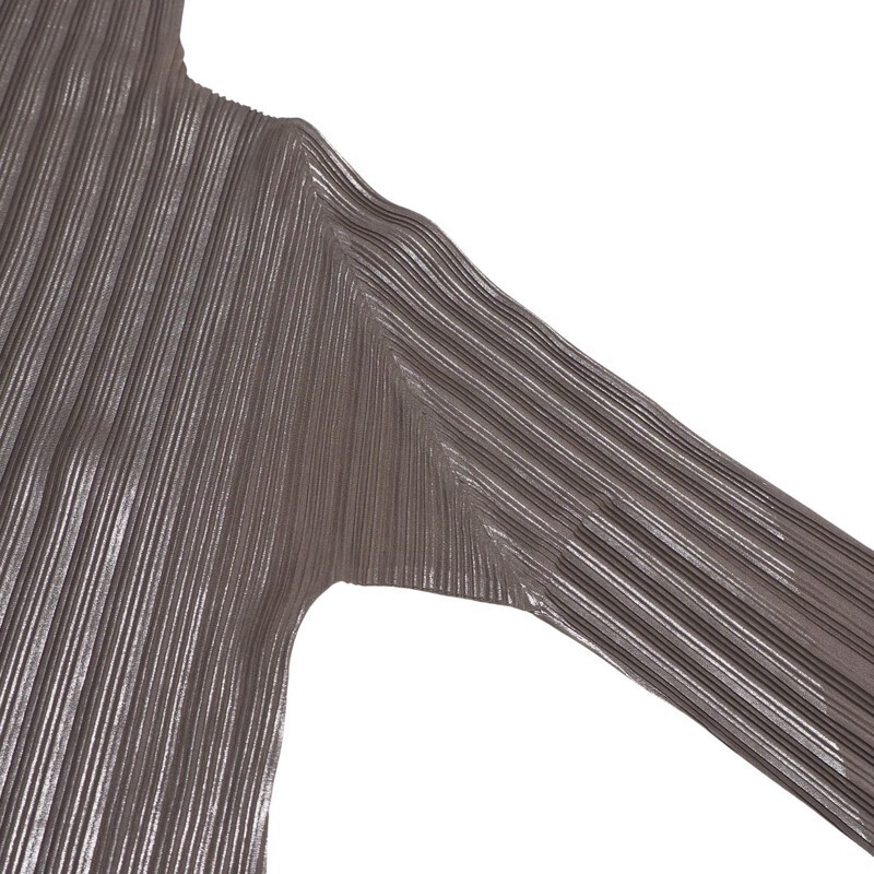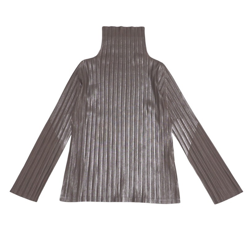 TJ5506〇プリーツプリーズ イッセイミヤケ PLEATS PLEASE ISSEY MIYAKE*プリーツ 伸縮 ラメ*ハイネック トップス*サイズ3*ブラウン | |||