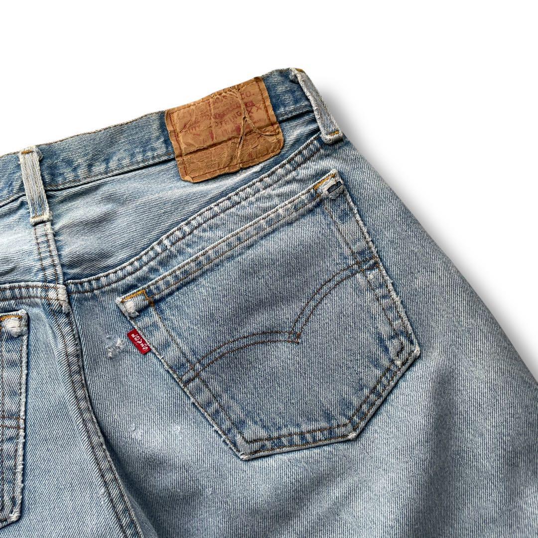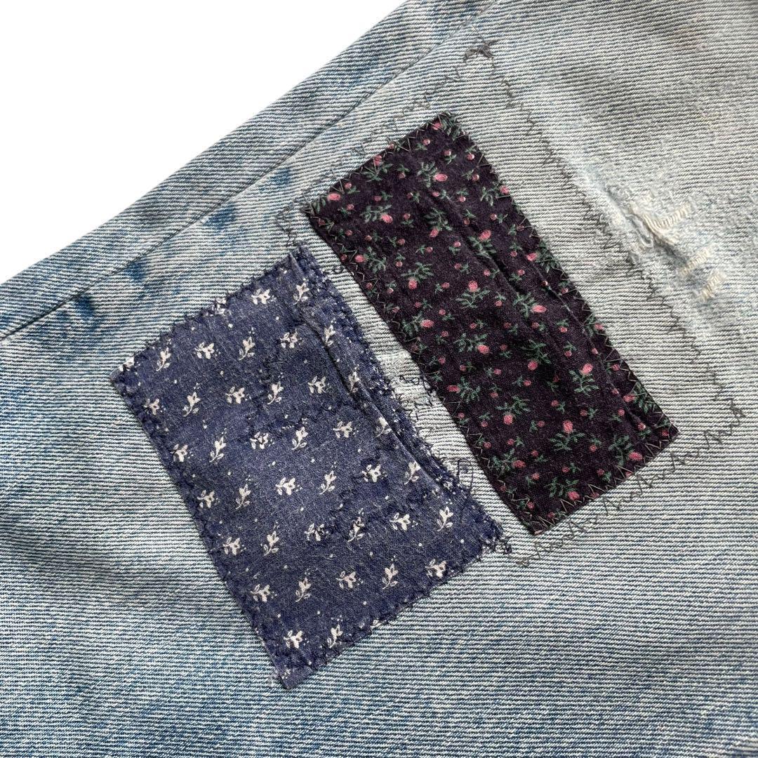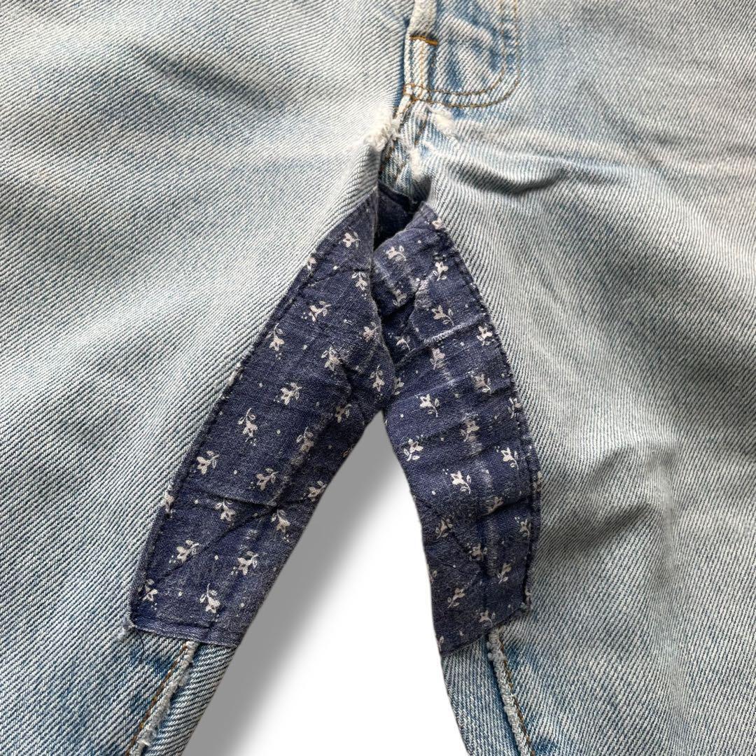 雰囲気があるヴィンテージのリーバイス501のデニムパンツにリペアでパッチワークが施された1本です。