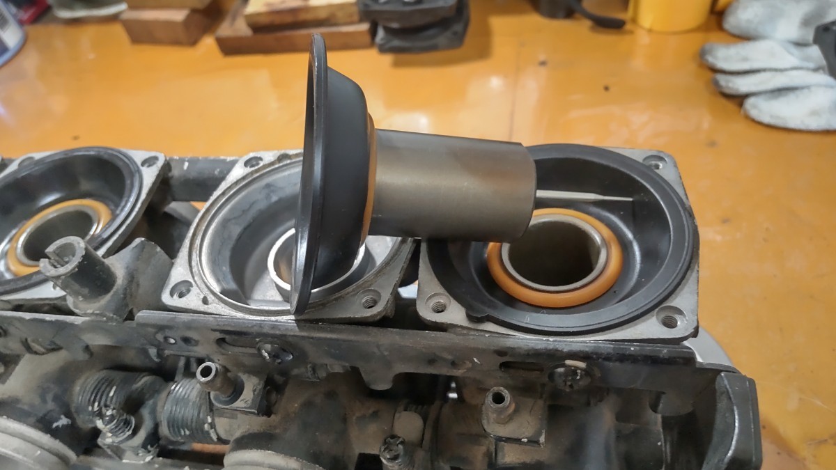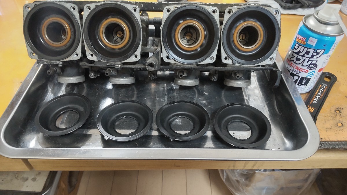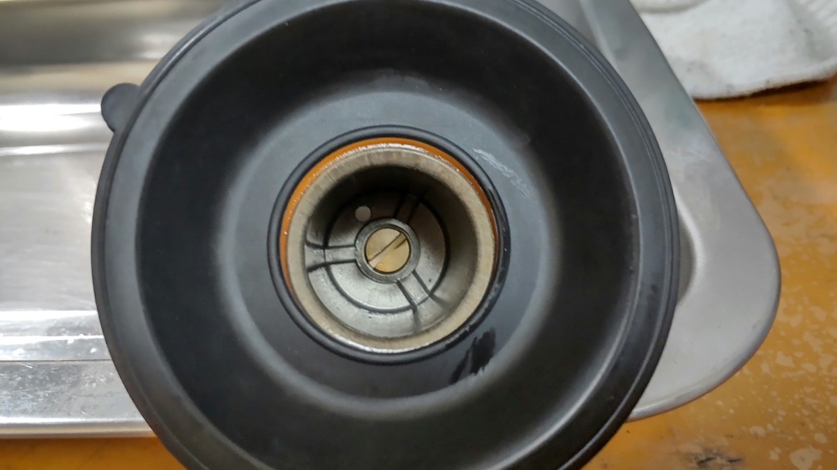 カワサキGPZ400F流用ダイヤフラムになります。絶版で、困っている部品だと思います。宜しくお願いいたします。まずは、100円ショップでシリコンスプレーとカーボンのヘラを用意してください あまりつかいませんので 余ったら バイクや車の劣化したプラスチックの部分に塗りドライヤーで温めれば艶が復活しますよ まずは古いダイヤフラムに裏表シリコンを塗り温めます。手でひっぱりますと簡単に外れます。塗らないと外れないし結構な力が、必要になります。 ダイヤフラムとバキュームピストンの先程の隙間にシリコンをぬりドライヤーで温めます。温めると、破れにくくなります。順番に煽るように入れていきます。大体中に5mmほど入ってる感じになります途中で横に引っ張り調整しますと最後まで入ったら 平均にからせば画像のようになります。画像のデコボコは、横に引っ張り慣らしてください こちらの商品はポッチの回転が止めは、いらないのでバキュームピストンそこの穴が バタフライ側に入れるのが大事になります。今回はキャップとネジで全体が止まりますのでポッチはカットしてもokです。スプリングをいれてキャップを閉めてネジで固定すれば完成です。ご検討宜しくお願いいたします。 この商品も、しばらく定番で販売します。切らしても、入荷したら出しますので また質問から声をかけて下さい。(^o^)| 出价者 | 信用 | 价格 | 时间 |
