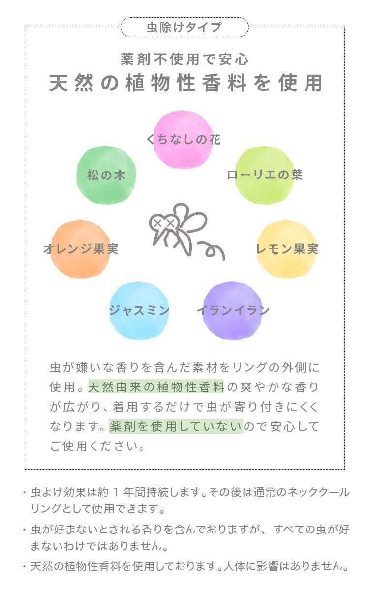 | 暑い真夏の季節! 熱中症対策の新定番!! 「アイスネックリング」 夜間の散歩ランニングなど、暗い道でも安心の蓄光タイプも! 明るい場所にしばらく置いておくと、暗い場所では淡い緑色に光ります。 夏祭りの着用もおすすめです。 NASAの宇宙飛行士を守るために研究開発された話題の新素材! 28度以下の空間で凍る不思議な氷「PCM素材」で作られた首元用のネッククーラー。 純度100% PCMだから冷えている時間が長い!!! 冷水にさらすだけでも凝固しひんやりがずっと長持ち! 水洗い可能なのでいつでも清潔。 心地良い温度で首の頸動脈を効率的に冷やすので熱中症対策にもGOOD! 首元を冷やして熱中症対策! 首元にフィットして落ちにくいデザイン! ひんやりとした心地いい適温で冷え性の方やお子様でも快適にお使い頂けます♪ 繰り返し使えるので自然にも経済的にもやさしい! 結露しないので時間が経っても水滴で首や洋服が濡れる心配が無くいつでもサラサラ!! バッグの中へそのまま入れられます。 「スポーツでアクティブに動く」 「屋外で作業」 「通勤・通学時」 「釣り」 「家事中」 「ホットフラッシュが気になる」 「クーラーのない空間での長時間の活動、作業」 「お風呂上がりや気分転換」 など様々他にも様々なシーンで活躍すること間違いなし。 ■商品コード:CLNK02MWH ■商品仕様 タイプ:虫よけ カラー:ホワイト サイズ :Mサイズ 素材:PCM、TPU 他 ■注意事項 ・冷たさの感じ方には個人差がございます。 ・本製品は保冷剤のように使用することはできません。 ・凍り方や個体差によって色の出方が異なります。 ・凍った時に本体の一部がへこみますが、製品仕様となり使用には問題ございません。 ・本体が破けてしまった場合はすぐに使用を中止し、液体が付着した場合は水で洗い流してください。 液体付着による肌荒れやかぶれ等の異常が見られた場合は専門医にご相談ください。 ・海外輸入品のため製品やパッケージに小さな傷や汚れ、へこみなどが見受けられる場合がございます。 あらかじめご了承ください。 ・ご利用のモニターによって、実物と異なる色に表示される場合がございます。 ・製品の特性上、28℃以上の環境で保管すると液体に変化し、冷たさを感じない場合がございます。 ・夏場の運送時など、28℃以上の環境でのお届けが予想されます。 リングが溶けたり、固まったりを繰り返しますので、リングにへこみのある物もございます。 ご到着後は平らな所で冷やしてお使い下さい。 ・気泡などもご使用に問題はございませんので、ご安心ください。 ・商品により重量に多少の誤差(±10g)が生じる場合がございます。ご了承ください。 ・商品は、モニターによって色合いが異なって見える場合があります。 ・仕様・デザインは改良のため予告なく変更することがあります。 ■保障期間 7日間 ※商品到着後7日以内の初期不良・破損のみご対応させていただきます。 【新品未使用品です】 |