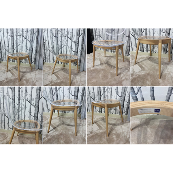 透明なアクリルと温かみのあるアッシュ材を組み合わせたデザインが特徴で、空間に広がりと軽やかさを与えます。