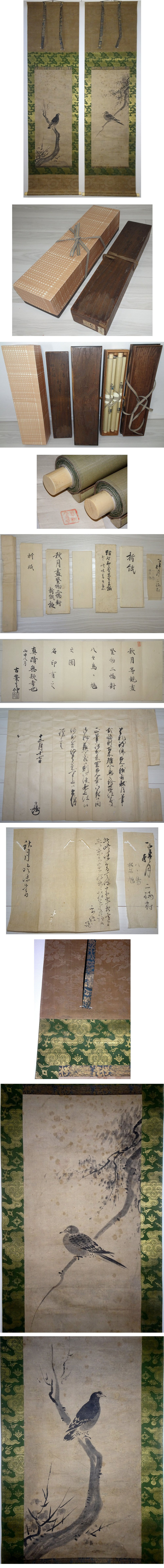 紙本 軸 真筆保証(真作) 金襴三段表装風帯つき ウブ幅 二重箱入 中身寸法87×33.5 少し時代等あり 幅自体しっかりしています ※極あり ※所蔵印あり ※書付あり よろしくお願い致します