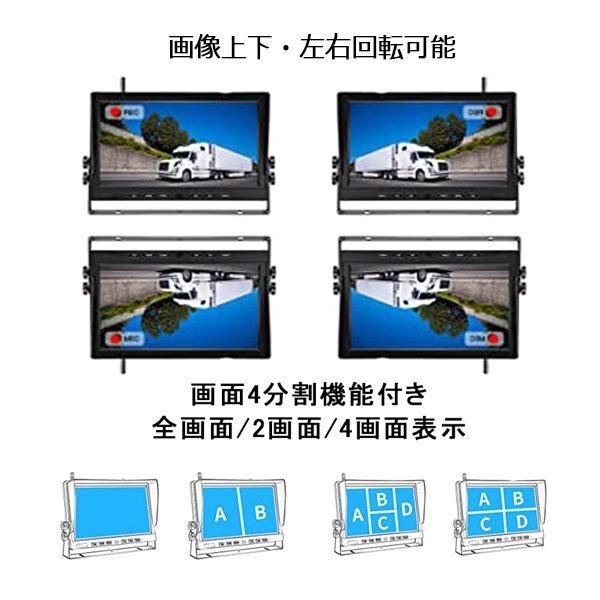 ドライブレコーダー ワイヤレス2画面 同時表示 無線 9インチモニター LED バックカメラ 2台 付き セット 録画 12V 24V リモコン付き [浏览原始页面]