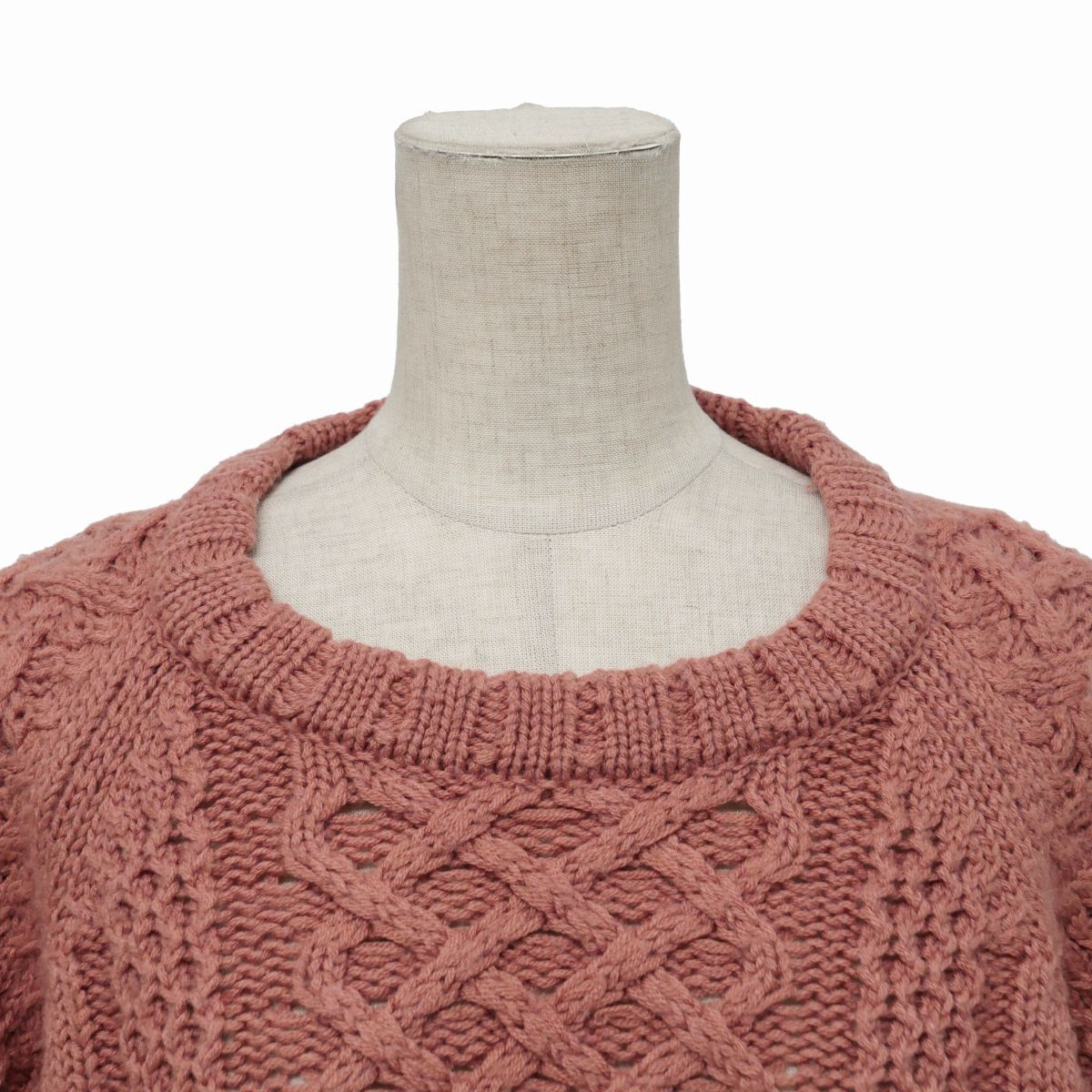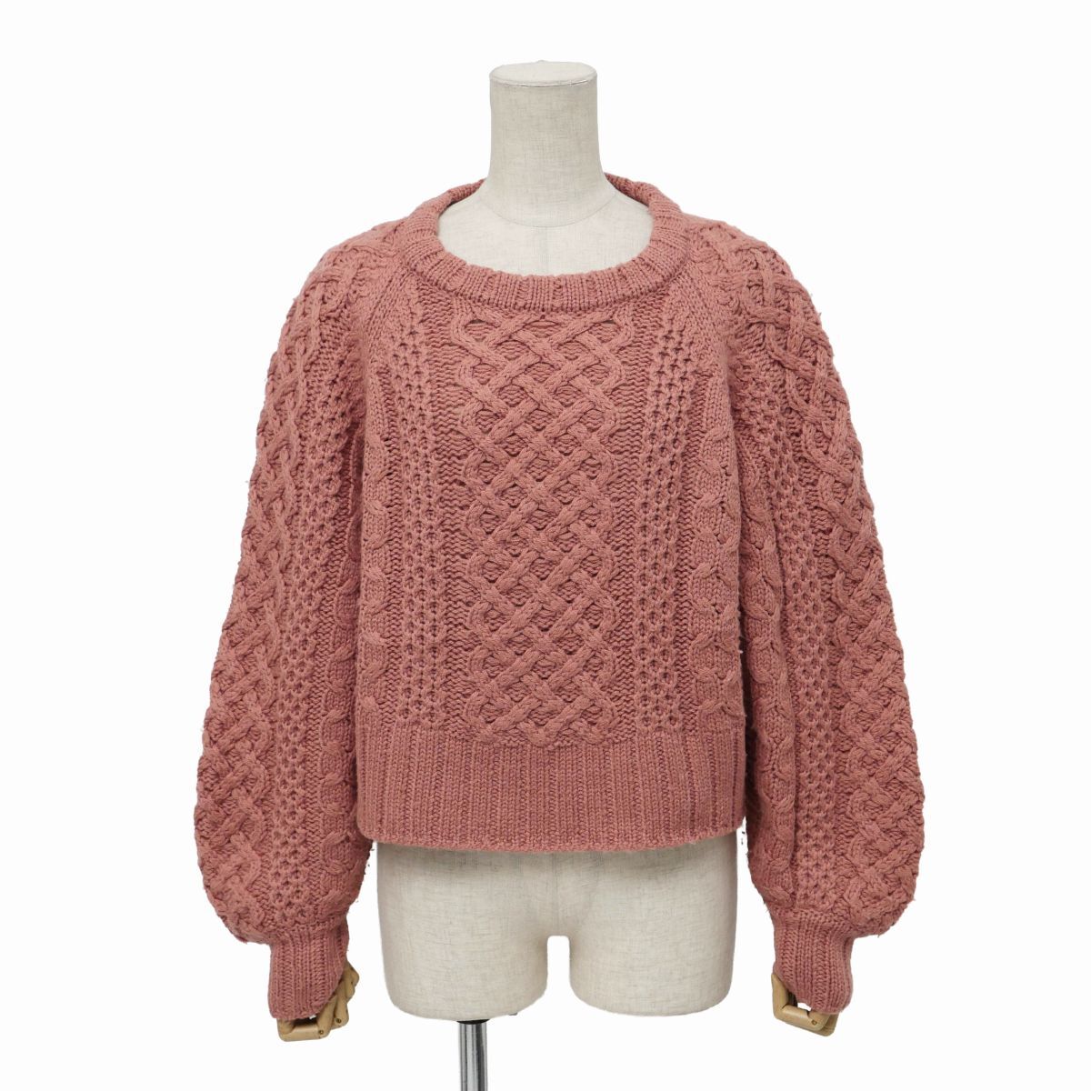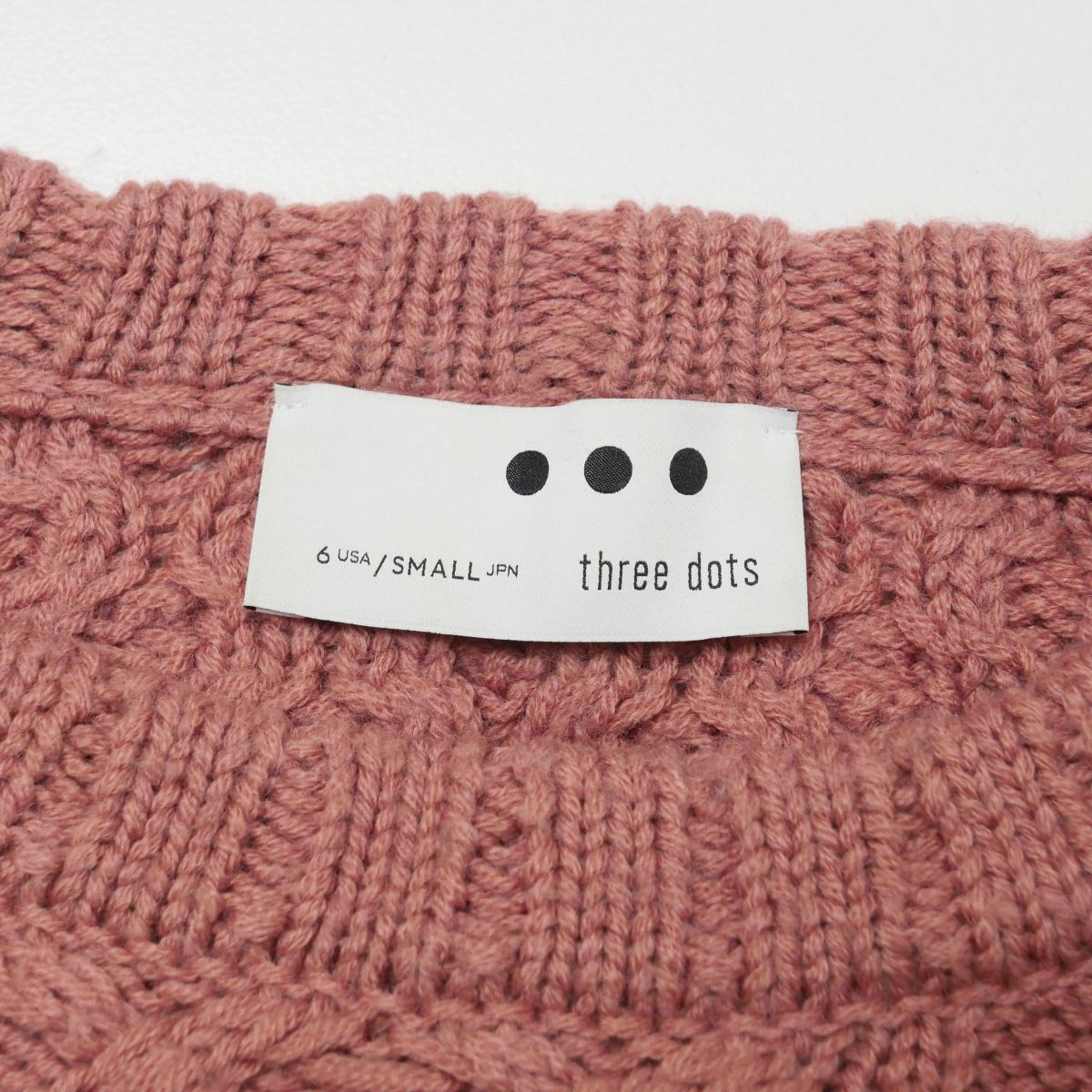 | TJ1836◇スリードッツ three dots ケーブルニット アランニット セーター ワイド幅 長袖 サイズS テラコッタ系 | |||