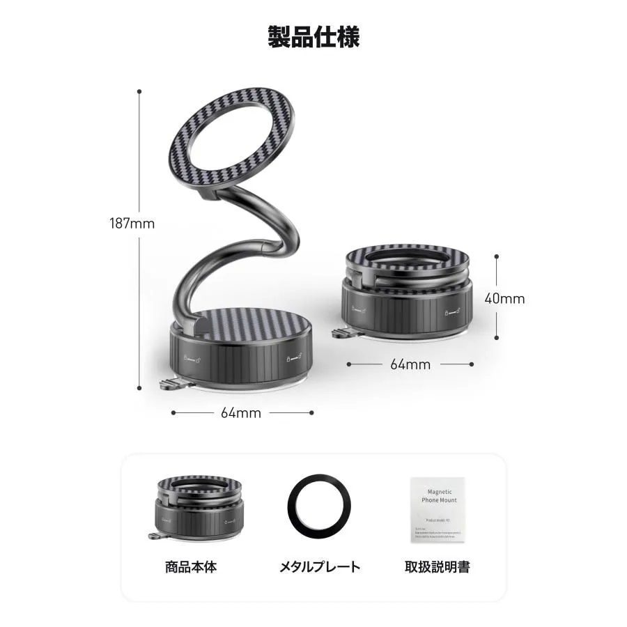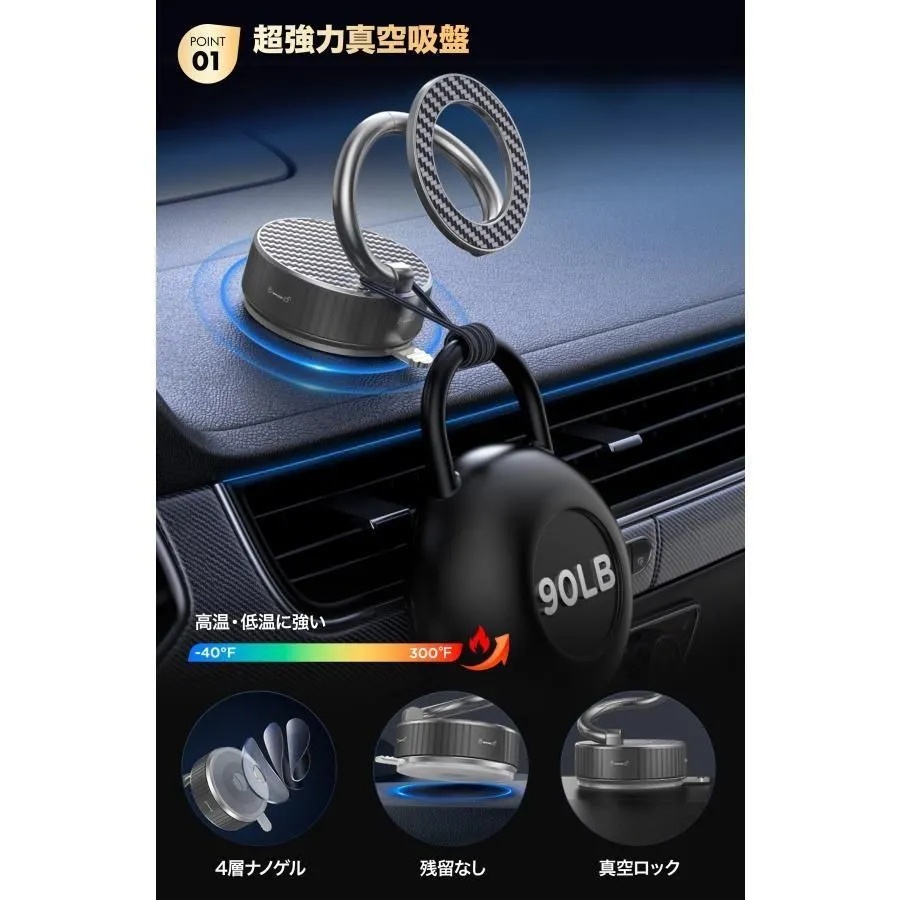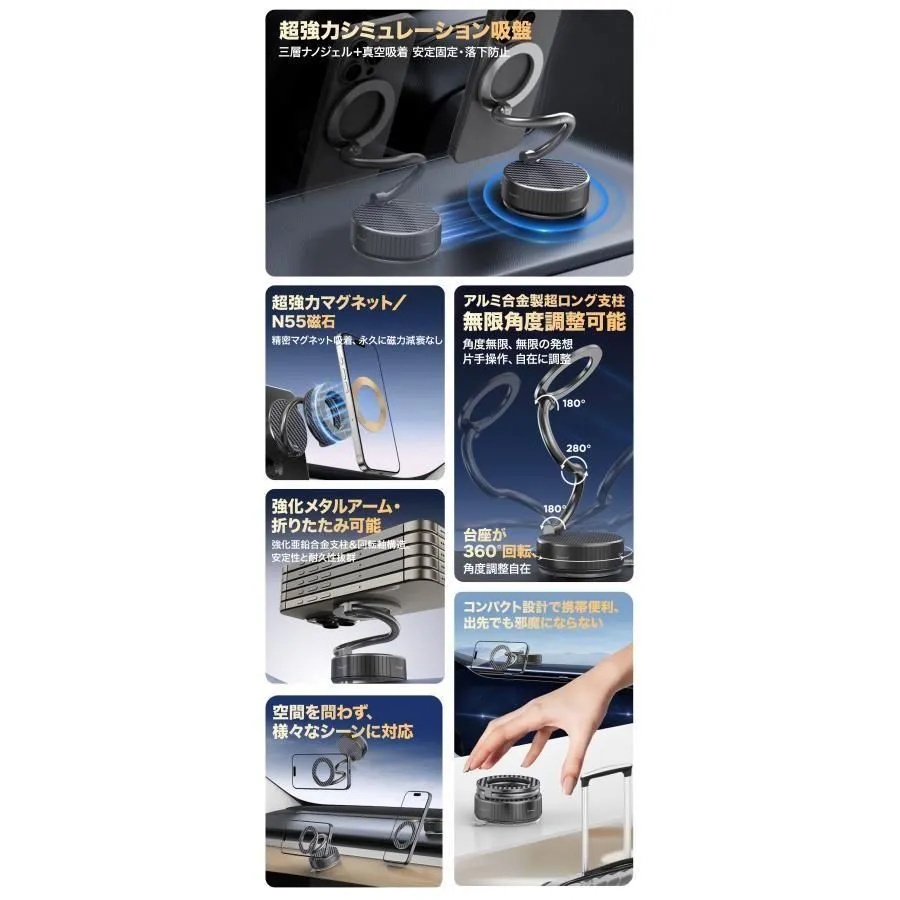 スマホホルダー 車 / 車載ホルダー / マグネット / magsafe / 真空吸盤 / iPhone / Android / スマホスタンド / 360度回転 / 車用ホルダー