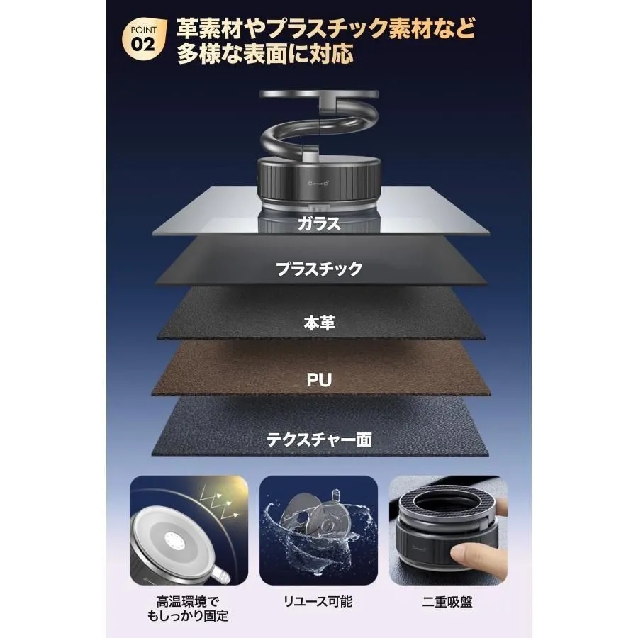 強力マグネットと真空吸盤の組み合わせで、走行中もしっかり固定できます。