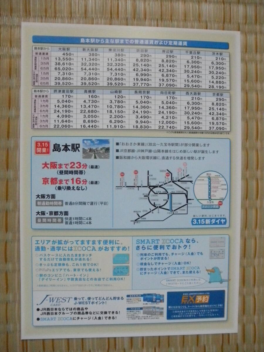 H20.3.15 JR西日本 JR京都線島本駅平成20年3月15日開業のチラシで内容は写真をご参照下さい(ファイルに入れて保管しておりましたので極端に悪い状態ではないと思いますが、駅等に置いてあったものの為初期キズなどがある場合があります)。相当年数が経過しているパンフレットであることをご了解いただける方のご入札をお願いします。なおパンフレットはクリアファイルに入れたものを袋に入れての発送となります。不明点などございましたらご入札前に質問欄より確認をお願いします(オークション終了日は大量の通知が届くため回答できませんのでご了承願います)。