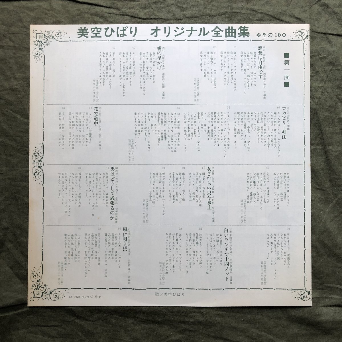 Selling Hibari Misora, LP record, ''Original Zenkyokushu Vol.15''
