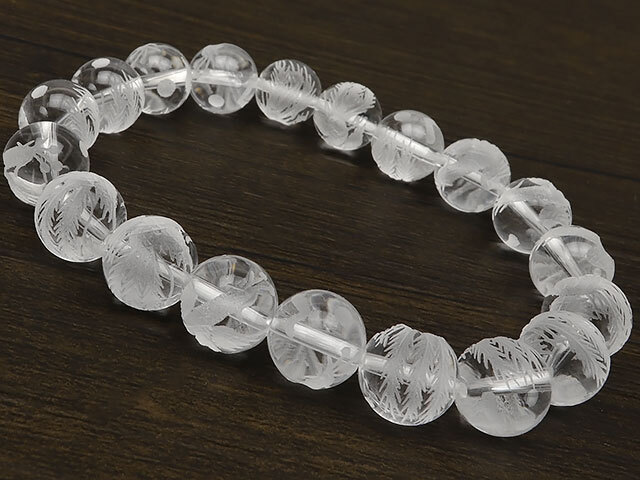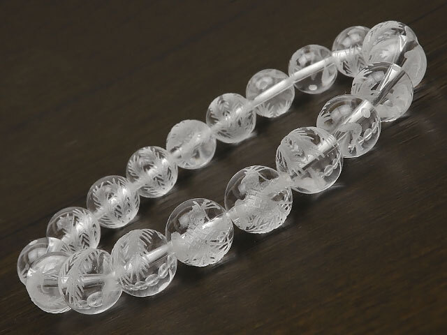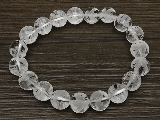 四神獣の朱雀を天然水晶に彫刻を施したブレスになります。