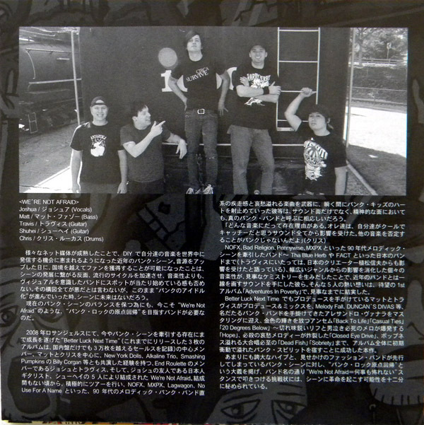 +++++++++++++++++++++ ◆送料◆ ゆうパケット(匿名配送) 全国一律180円 +++++++++++++++++++++ 【商品情報】 アーティスト:WE'RE NOT AFRAID タイトル:Adventures in Poverty 規格番号:RADC-054 発売年:2010年 フォーマット:CD アルバム(日本盤) 【収録曲】 全12曲 1. Back To Life 2. Casual Ties 3. Hope 4. One Man Economy 5. Closed Eye Drive 6. Live It Your Way 7. Dead Fish 8. Simon B. 9. The Fire That Thought 10. 20 Degrees Below 11. Do Tell 12. Sobriety(日本盤ボーナストラック) ----------------------- ◆付属品・状態◆ ・日本盤 歌詞カードあり ・帯なし ・ケースにスレあり、中古品のためご理解ください ・盤面良好 ・再生未確認 ・レンタル落ちではありません ----------------------- ◆ご面倒ですが【自己紹介欄】は必ずご覧ください。 |