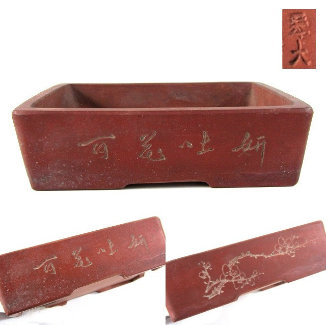C637 時代 中国 支那鉢 朱泥 釘彫 長方鉢 間口約8×13cm【説明欄に詳細写真有り】 [浏览原始页面]