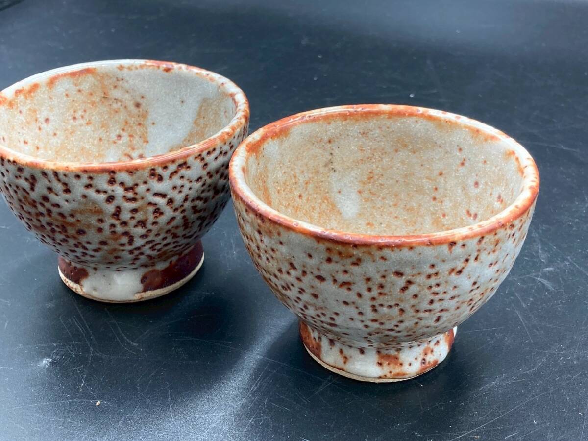 湯呑 茶器 中古 美品 高さ6.3㎝ 直径9㎝ 煎茶道具 碗 和食器 2点 茶托 陶器 焼き物 箱無し オレンジ *B1157-4* [浏览原始页面]