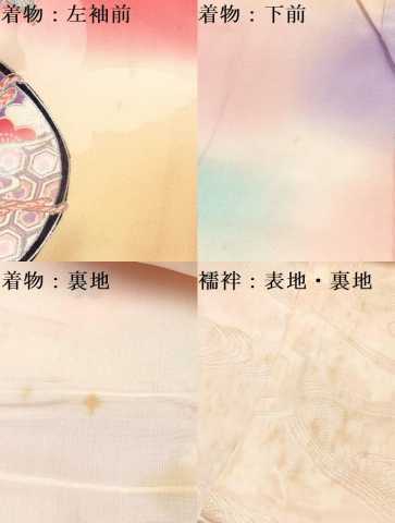| 産着【表地:正絹・裏地:アセテート・襦袢:化繊・未使用】の 状態は接写画像のように 着物:左袖前・下前・裏地、襦袢:表地・裏地に薄い汚れがございますが その他特に目立ったシミ汚れなどもなく大変良い状態です。 大変上質な逸品になります。 お安く出品致しますので、是非この機会にいかがでしょうか? ※袖は大名袖になっております。 ※素材の詳細は画像を御覧ください。
