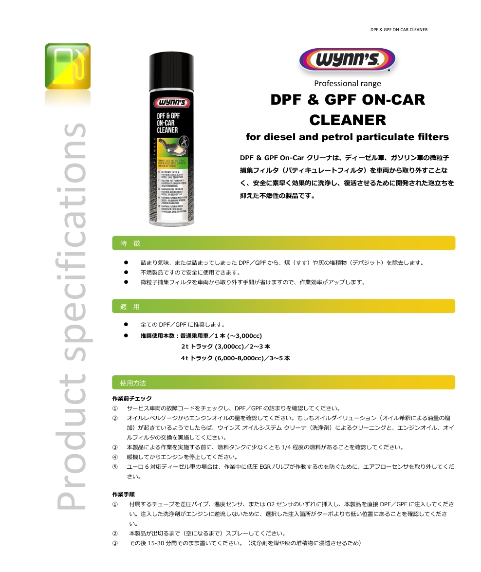 | Wynn's DPF & GPF ON-CAR CLEANER DPF洗浄 泡で絡めとる | |