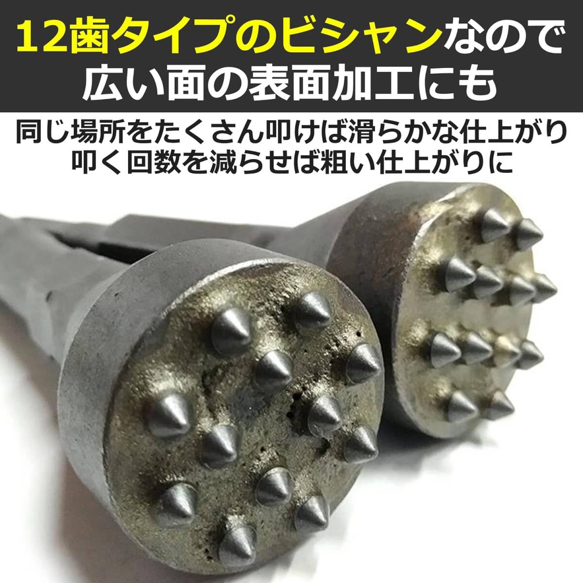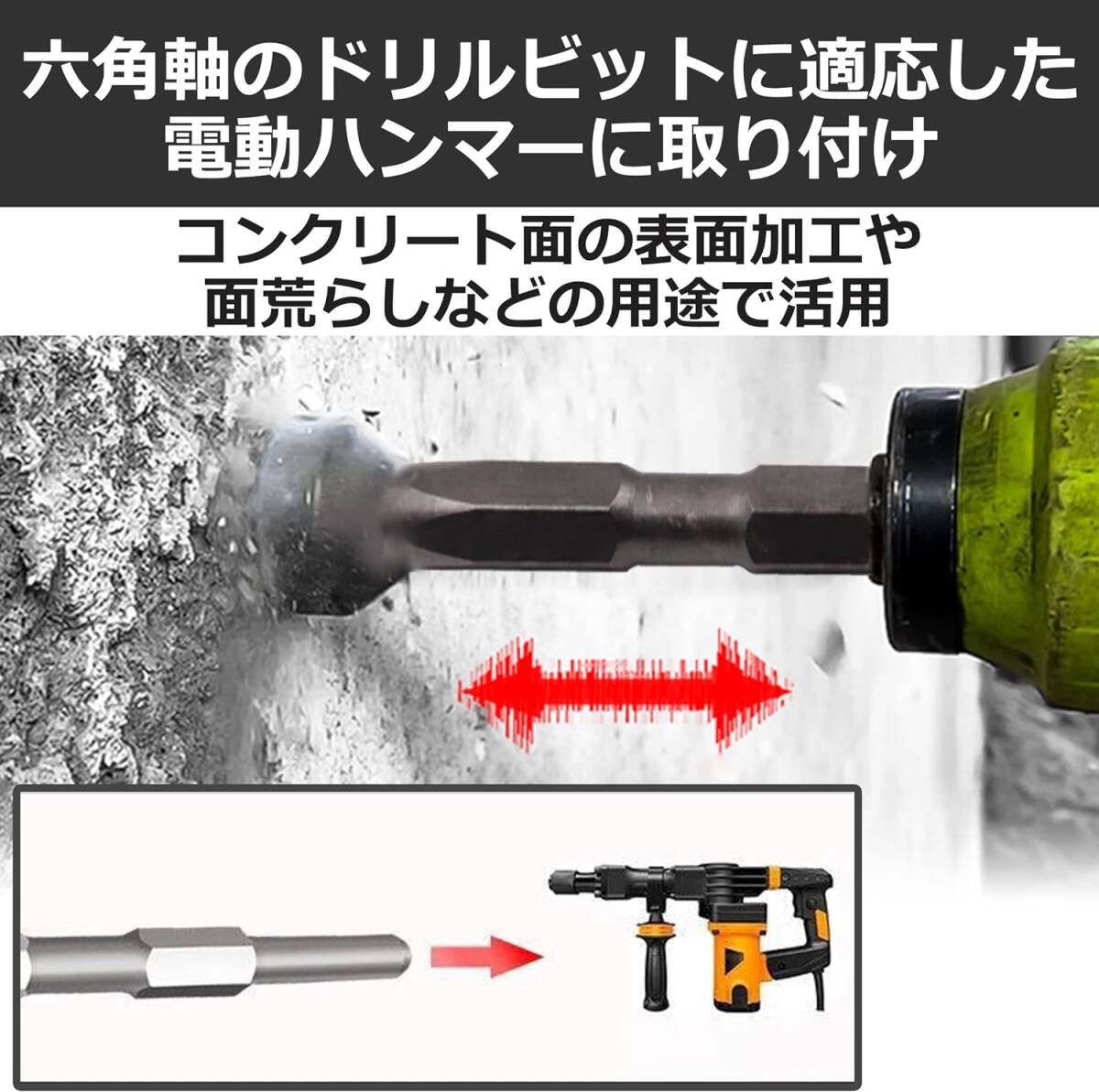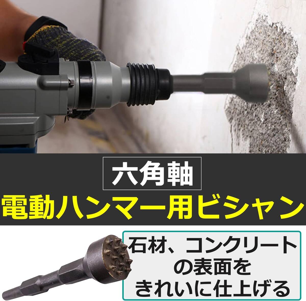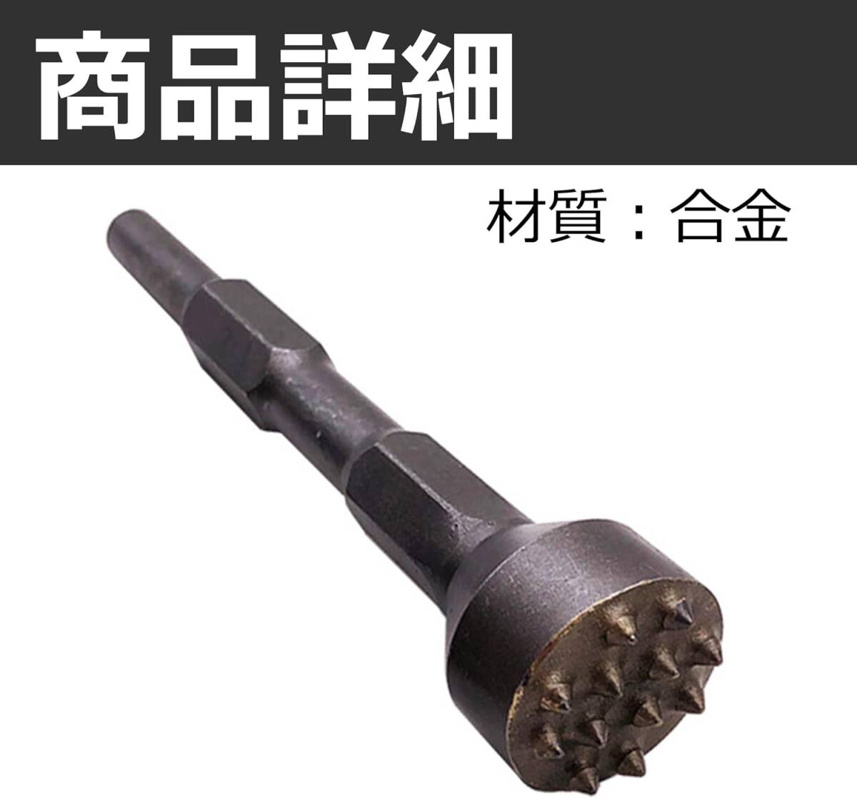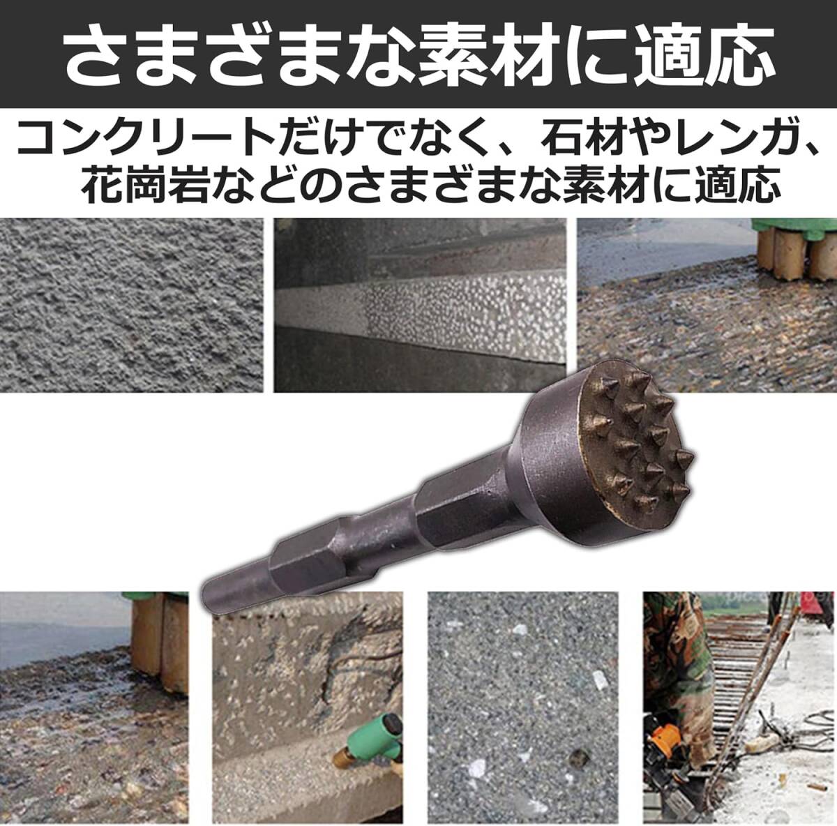 電動ハンマ―用のビシャン:電動ハンマーに取り付けてコンクリート面の表面加工や面荒らしなどの用途で活用できるビシャンです。六角軸のドリルビットに適応した電動ハンマーに取り付けできます。 広い面の表面加工にも:12歯タイプのビシャンなので、狭い面だけでなく、広い面の表面加工にも適しています。同じ場所をたくさん叩けば滑らかな仕上がりに、叩く回数を減らせば粗い仕上がりとなります。 さまざまな素材に適応:こちらのビシャンは、コンクリートだけでなく、石材やレンガ、花崗岩などのさまざまな素材に適応しています。より自然で味のある仕上がりにするためにもぜひ活用を検討してみてください。 DIYが趣味の方におすすめ:DIYが趣味の方やセルフリフォームをしたい方におすすめのツールとなっています。合金製の頑丈なツールなので、壊れにくく、長く愛用していただきやすいです。 カラー:シルバー 材質:合金 ※モニターの環境等により、色の見え方に若干差が生じる場合がございます。 |