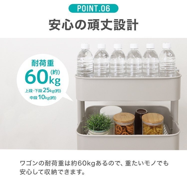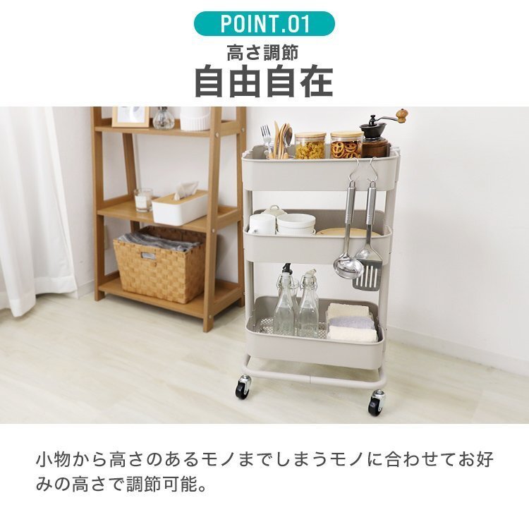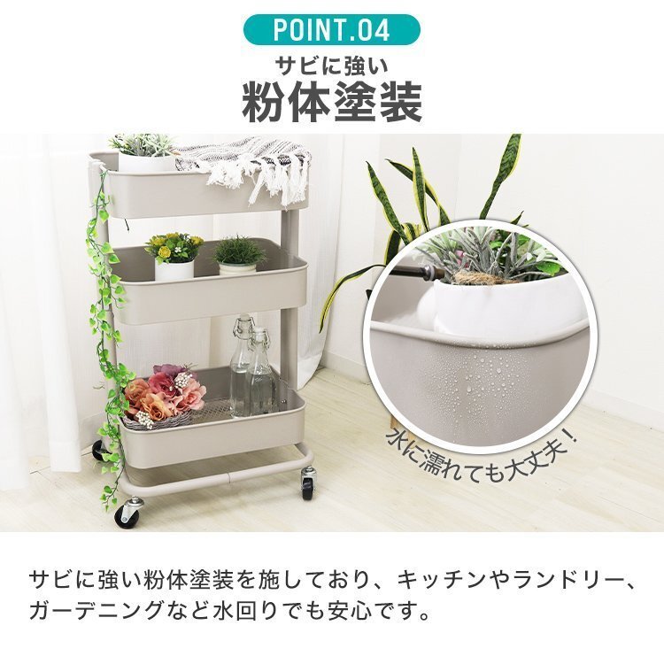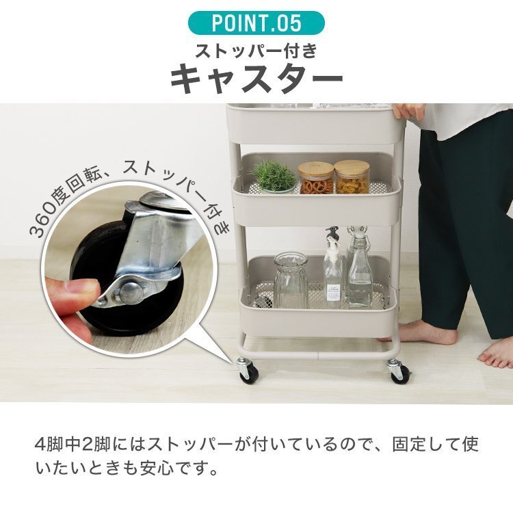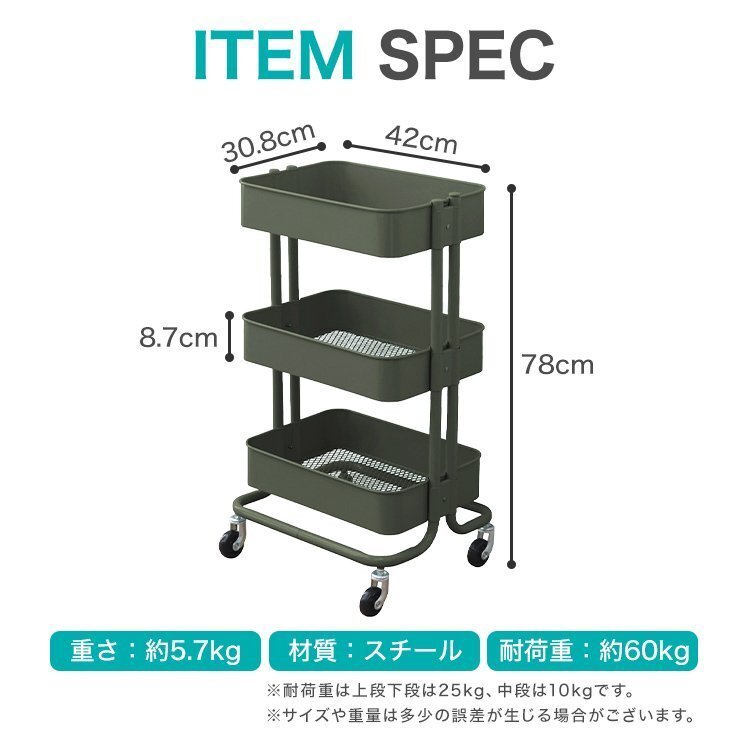 | シンプルなデザインと頑丈な構造で収納効率抜群な多機能ワゴンです! キッチン、リビング、浴室、ガレージ等、様々なシーンでお使いいただけます。 中段は収納する物に合わせて自由に高さ調節可能! 蝶ナット仕様なので工具不要です。 各段のバスケット底面はメッシュ仕様! 軽くて通気性が良く、ホコリや細かいゴミが溜まりづらいです。 ストッパー付きキャスター採用! 4脚中2脚にストッパーが付いてます。しっかり固定もでき安全です。 その他、支柱パイプは2本組で安定感抜群です。 また、サビに強い粉体塗装を施しており、水に濡れても大丈夫! 機能性とデザイン性を兼ね備えた収納ワゴンで快適なライフスタイルに♪ 【商品詳細】 カラー:ホワイト サイズ:(約)幅42cm×奥行30.8cm×高さ78cm 1段当たりの高さ:(約)8.7cm 重量:(約)5.7kg 耐荷重:(約)60kg 材質:スチール (収納ラック キッチンラック バスケットラック スチールラック スチールワゴン ツールワゴン ベビーワゴン 多機能 ワゴン ラック 高さを変えられる キッチン 炊飯器 ランドリー 子供部屋 ランドセル オムツ 庭 ガレージ プレゼント 北欧 かわいい 人気 おすすめ 安い) |