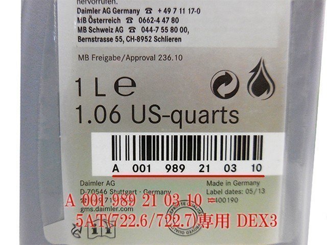 | 純正 722.6系 5速AT用 ATオイル 1L Eクラス W207 E250 メルセデス ベンツ ATF オートマオイル DEX3 |