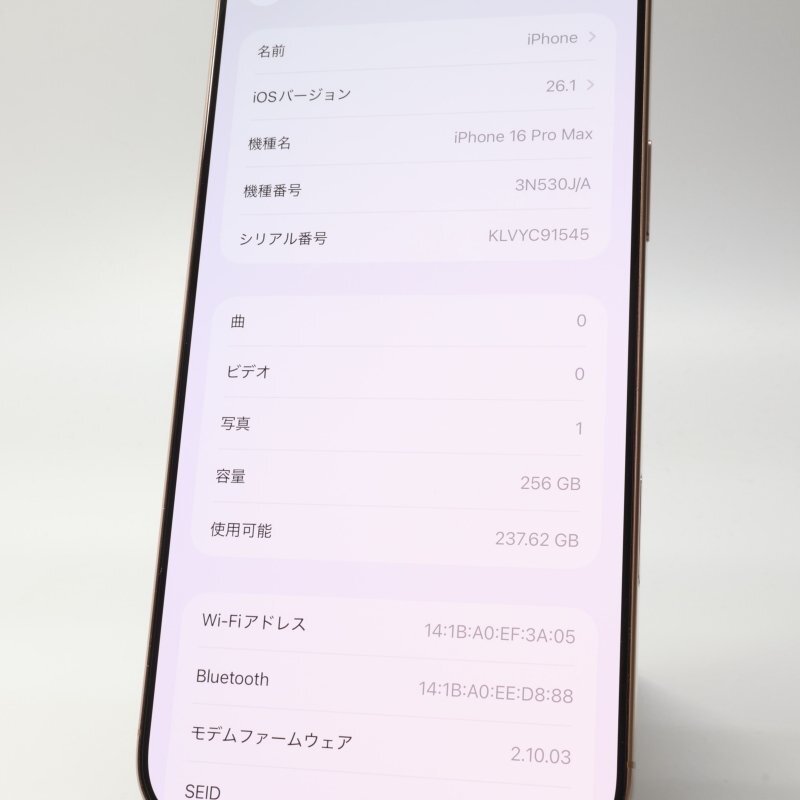 店頭展示品です。■機種 : iPhone16 Pro Max 256GB デザートチタニウム A3295 3N530J/A