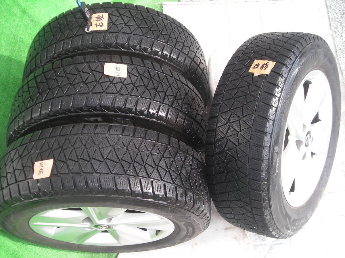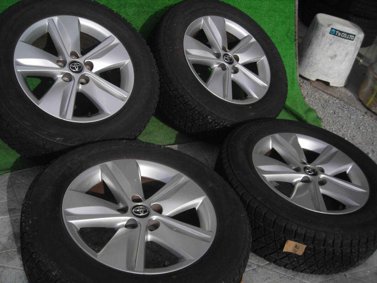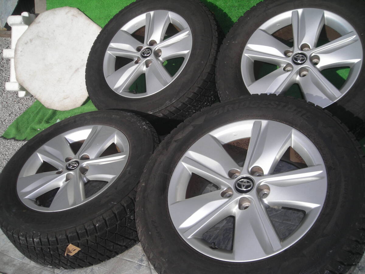 ★ ★ ☆ ☆ ☆ ★ ☆ ★ ☆ ★★ トヨタ 60系/80系 ハリアー 純正ホイール シルバー 5本スポーク 4本セット7J オフセット+39 4本 PCD:114.3 5穴 ハブ径 60mm【 タイヤ 】 ブリヂストン ブリザックDMV2 225/65R17 4本セット (2016年製)※画像のバリ山タイヤ4本を装着してあります。 前オーナーがあまり使用せず倉庫保管していました。残り溝は、8~9分山くらいありますのでそのまま使用可能です。★★ホイールは、目立つようなガリ傷も無く、全体的にシルバーの光沢も綺麗な印象で良好な状態でおすすめです。