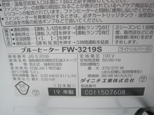 | 11-488♀Dainichi/ダイニチ ブルーヒーター/石油ファンヒーター FW-3219S 19年製♀ | |