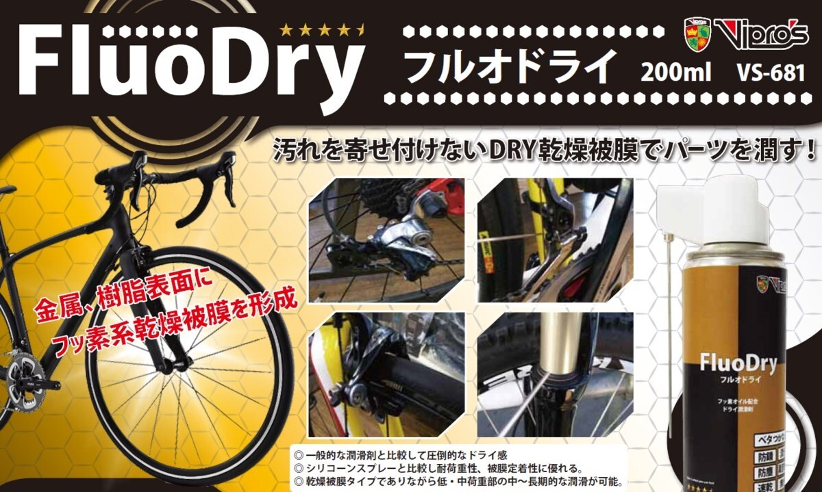 Vipros ヴィプロス フルオドライ FLUO DRY フッソ DRY乾燥皮膜 油汚れが付きにくい 防錆 潤滑剤 200ml |