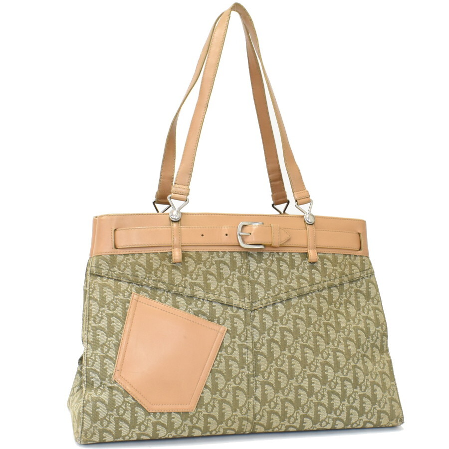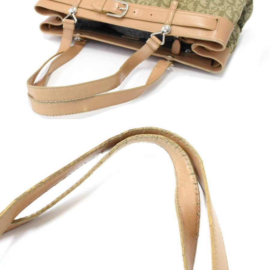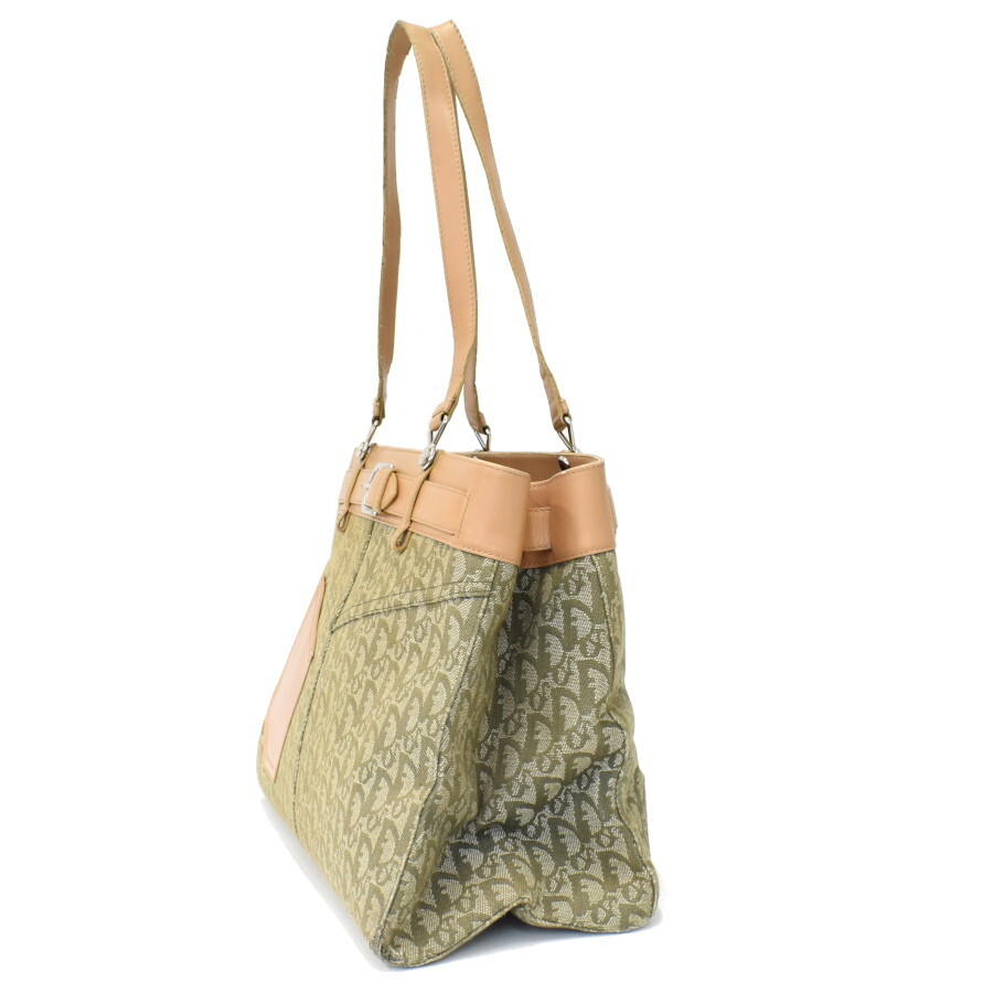 1円◎Chistian Dior/クリスチャンディオール/トートバッグ/ショルダー/トロッター/カーキ/ベージュ/ヴィンテージ◎E.Cir.tI-04