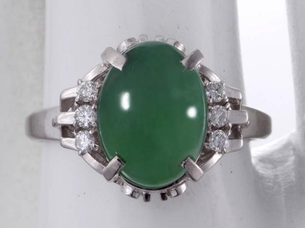| サイズ | 15号サイズ、翡翠の大きさ11.6x8.8ミリ、リングの全高29ミリ、リング全体の横幅20ミリ |