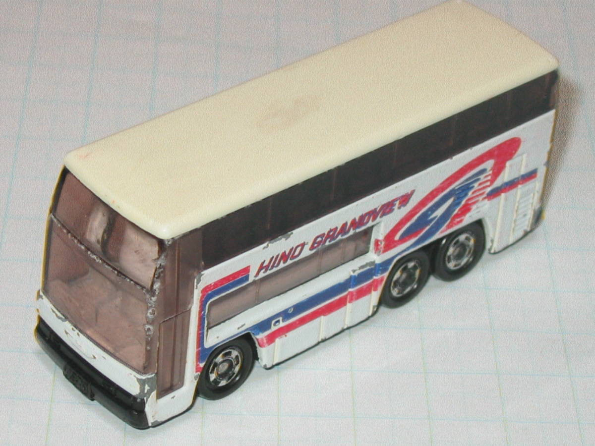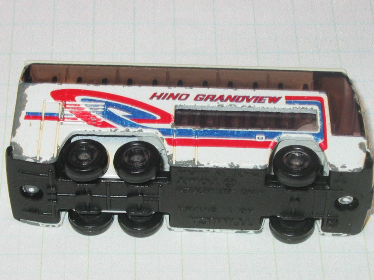 トミカ 1 ★日野 グランビューバス HINO GRANDVIEW BUS 日本製 ジャンク品 です!!送るのは、写真のものです。外箱もありません。子供が遊んでいたものですから本体のシール痕、色あせ、色むら、キズ、欠損等、ノークレームでお願いいたします!写真で判断してください。プチプチ包装もします。裏面の刻印は、TOMICA HINO GRANDVIEW NO.1 S=1/154 (C) TOMY MADE IN JAPAN