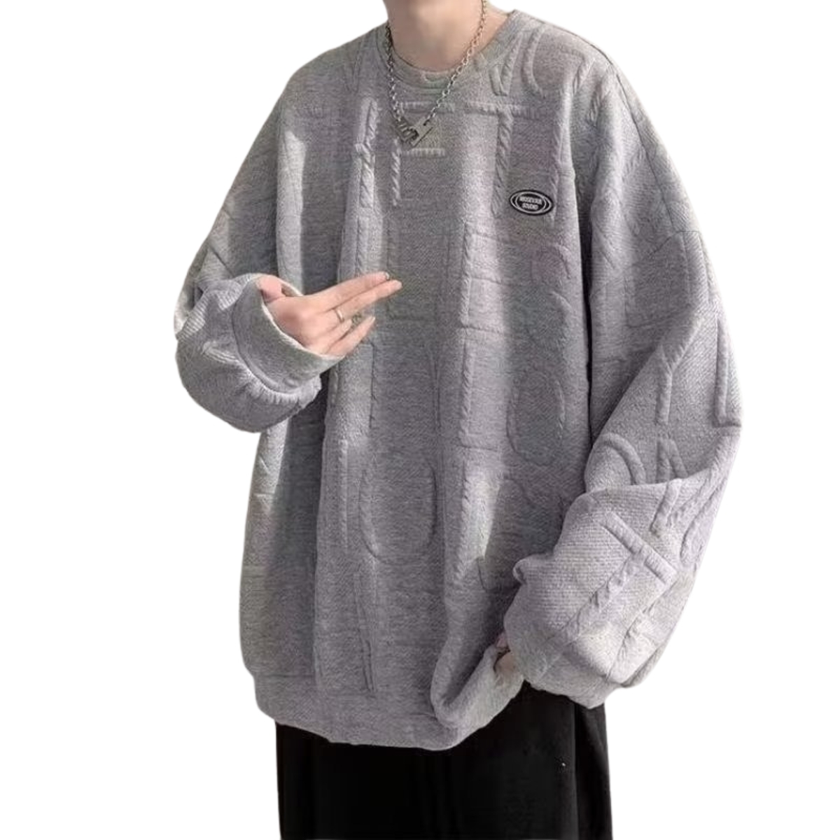 【XL グレー】 薄手 トレーナー クルーネック ドロップショルダー オーバーサ