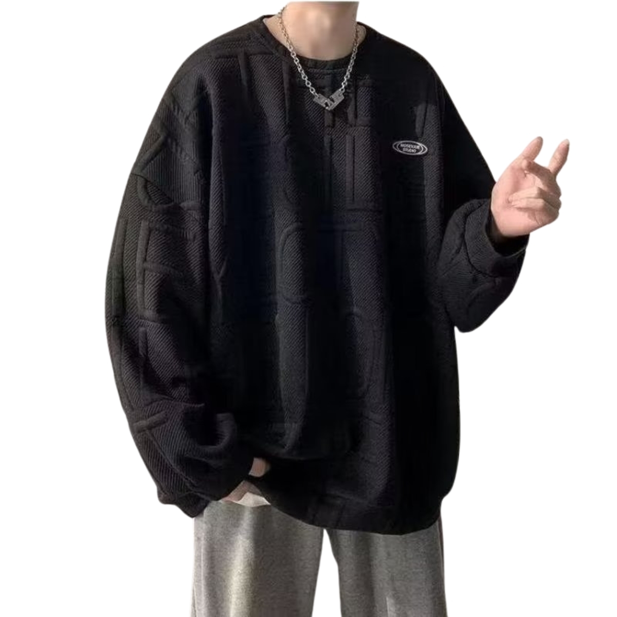 【M ブラック】 薄手 トレーナー クルーネック ドロップショルダー オーバーサ