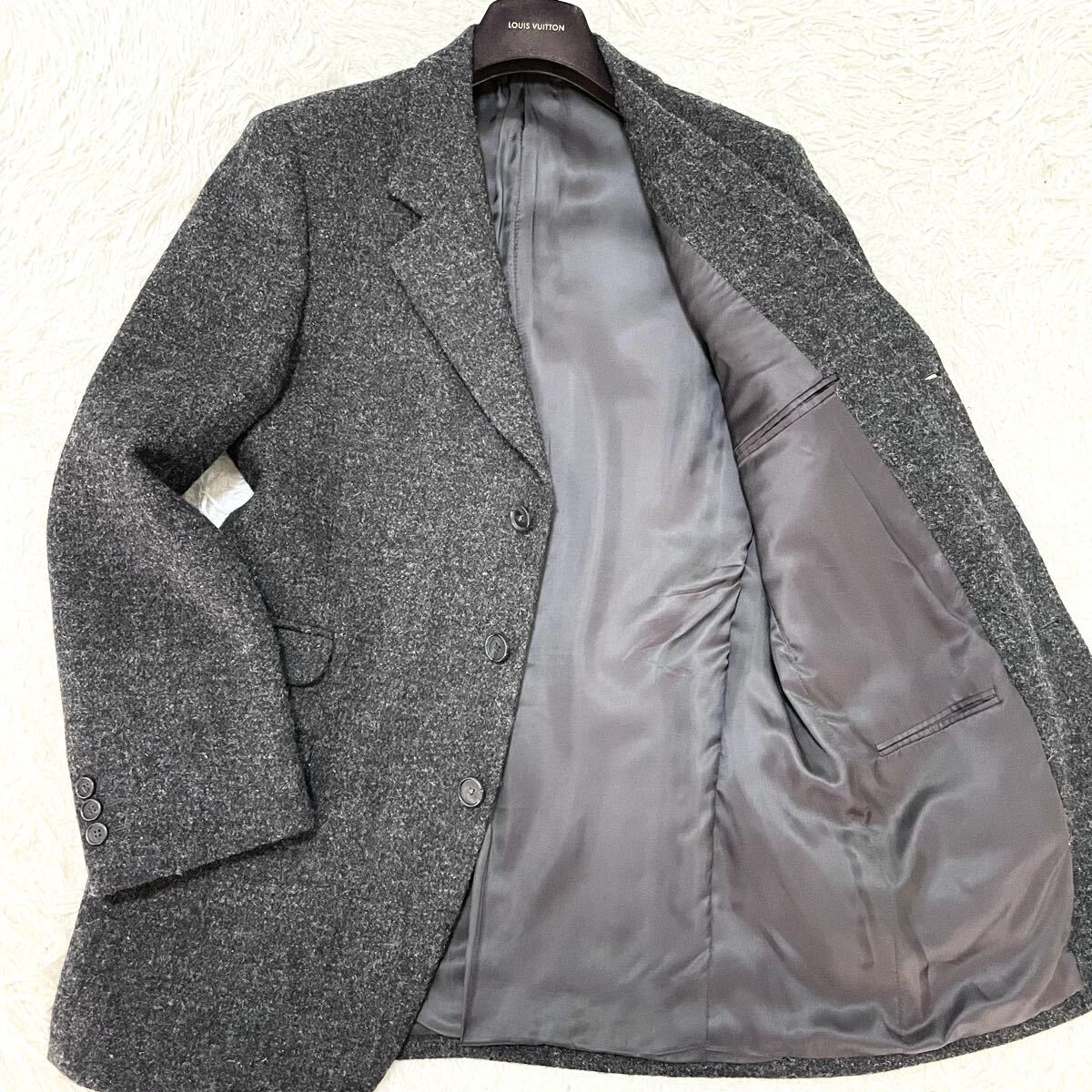52/L相当 レダエリ【最高級イタリア生地】ツイードチェスターコート チャコール
