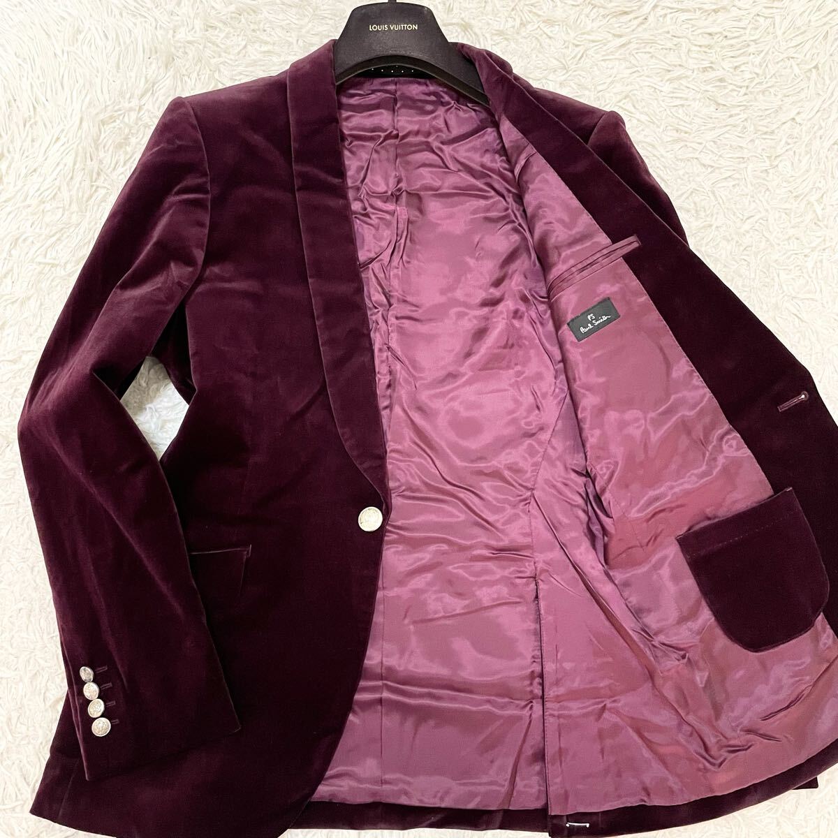 未使用に近い ポールスミス【真紅で魅せる色気】ベロアテーラードジャケット ワイン