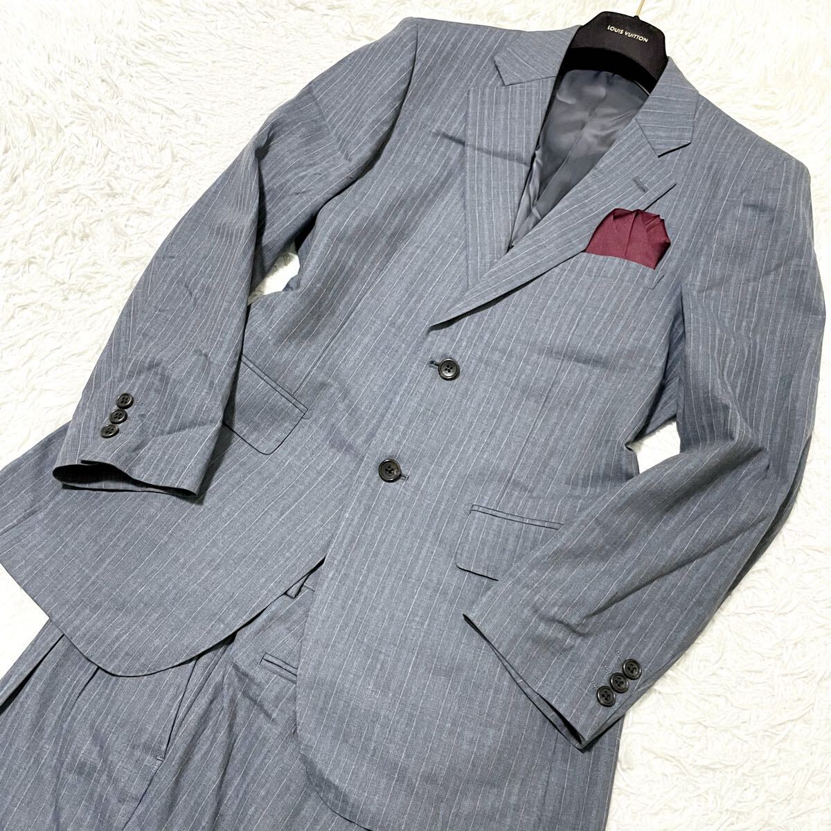 極美品 ダーバン×ロロピアーナ【色気のブルーストライプ柄】セットアップ メンズス