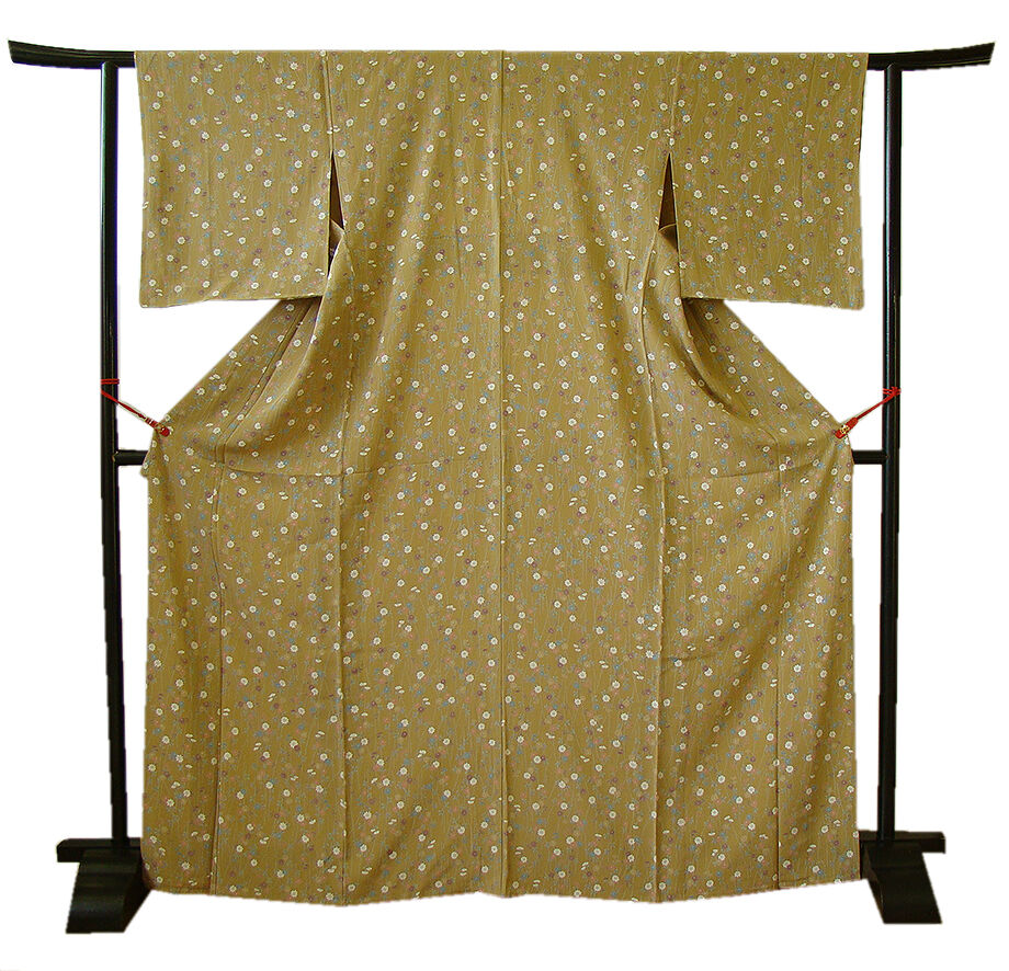 時代屋 裄67.1cm 単衣 桑染色 縮緬地 小紋 正絹 仕立上り 155cm~161cm KJ213 收藏