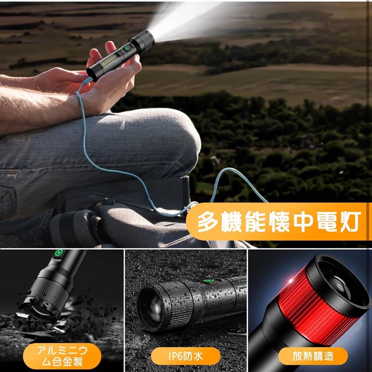 懐中電灯 ledライト 白色と赤色COB作業灯 6モード調光 最大照射距離500m大容量電池 実用点灯最大16時間 Type-C充電式 急速放熱 アルミ合金 收藏