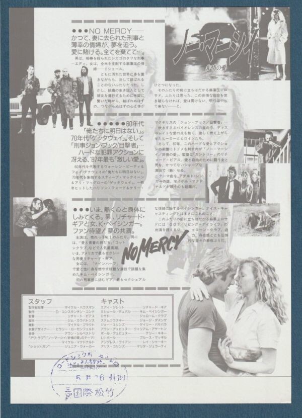 チラシ■1987年【ノー・マーシイ 非情の愛】[ B ランク ] 国際松竹 スタンプ/リチャード・ピアース リチャード・ギア キム・ベイシンガー 收藏