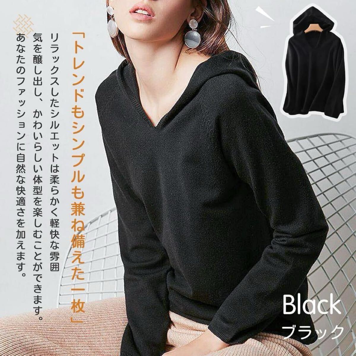 [Gfuracefuliayer] セーター ニット パーカー 長袖 フード付き レディース トップス 春 秋 Vネック プルオーバー ニット 大きいサイズ 着痩せ ゆったり おしゃれ 上着 カジュアル かわいい きれいめ シンプル