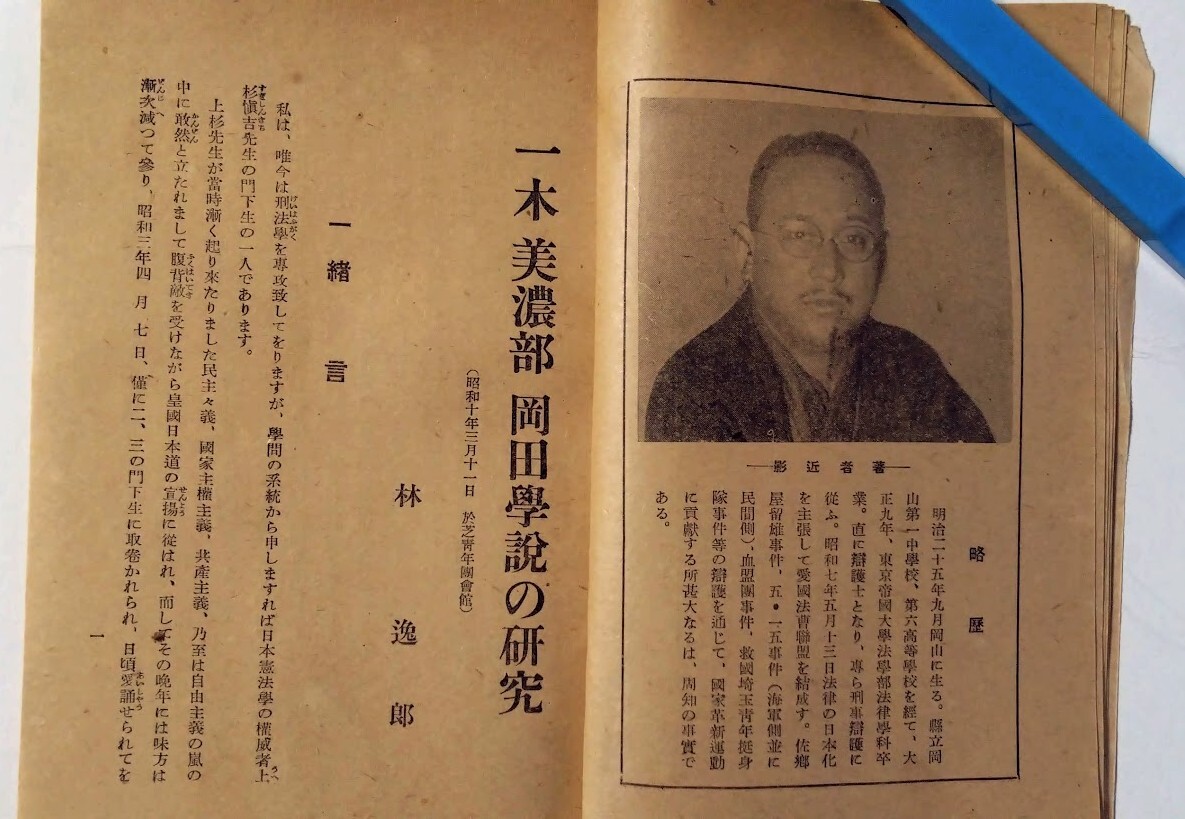 「天皇機関説撃滅 一木・美濃部・岡田學説の研究 附:美濃部達吉不敬事件告発状全文」愛国法曹盟理事 林逸郎:著昭和神聖會 昭和10年 收藏