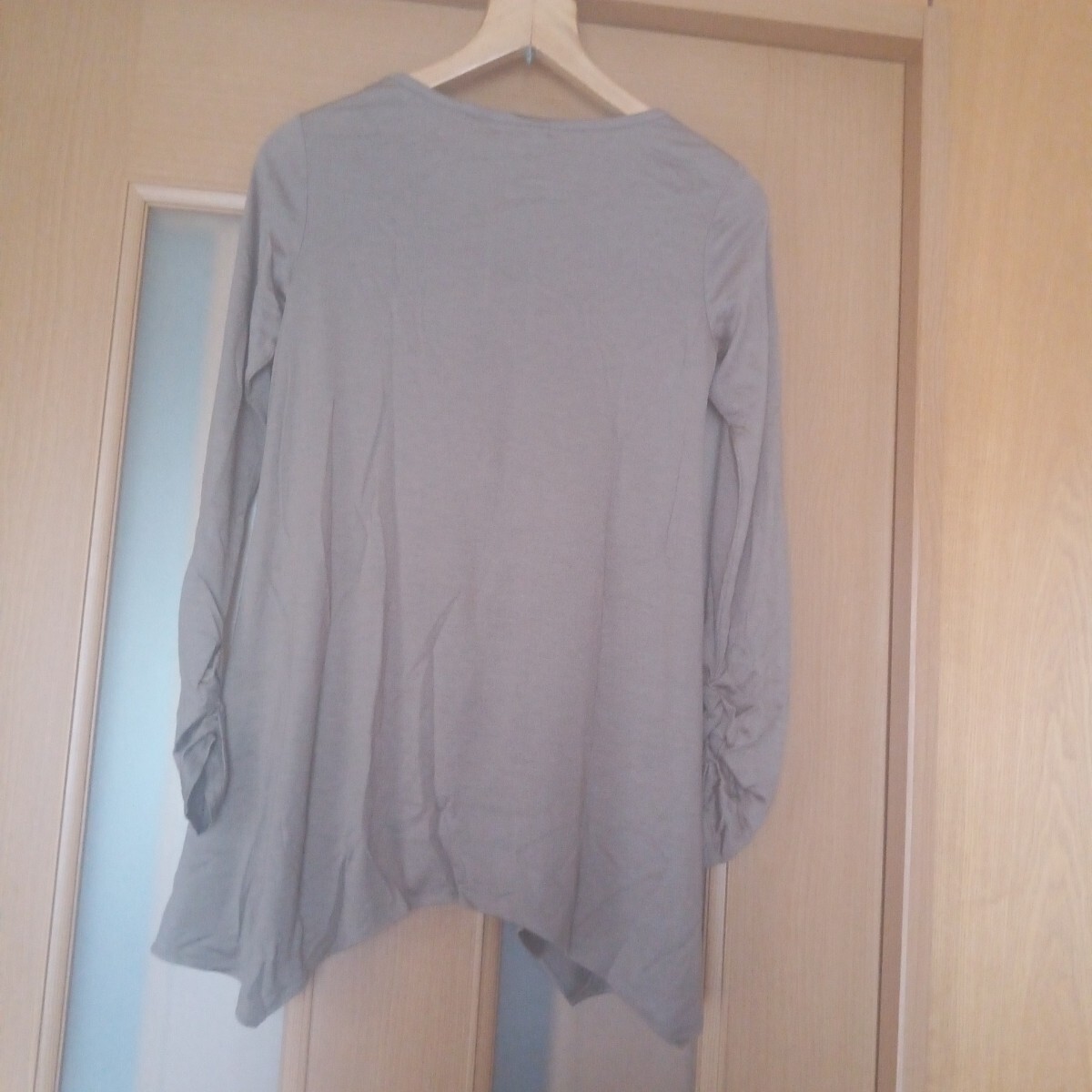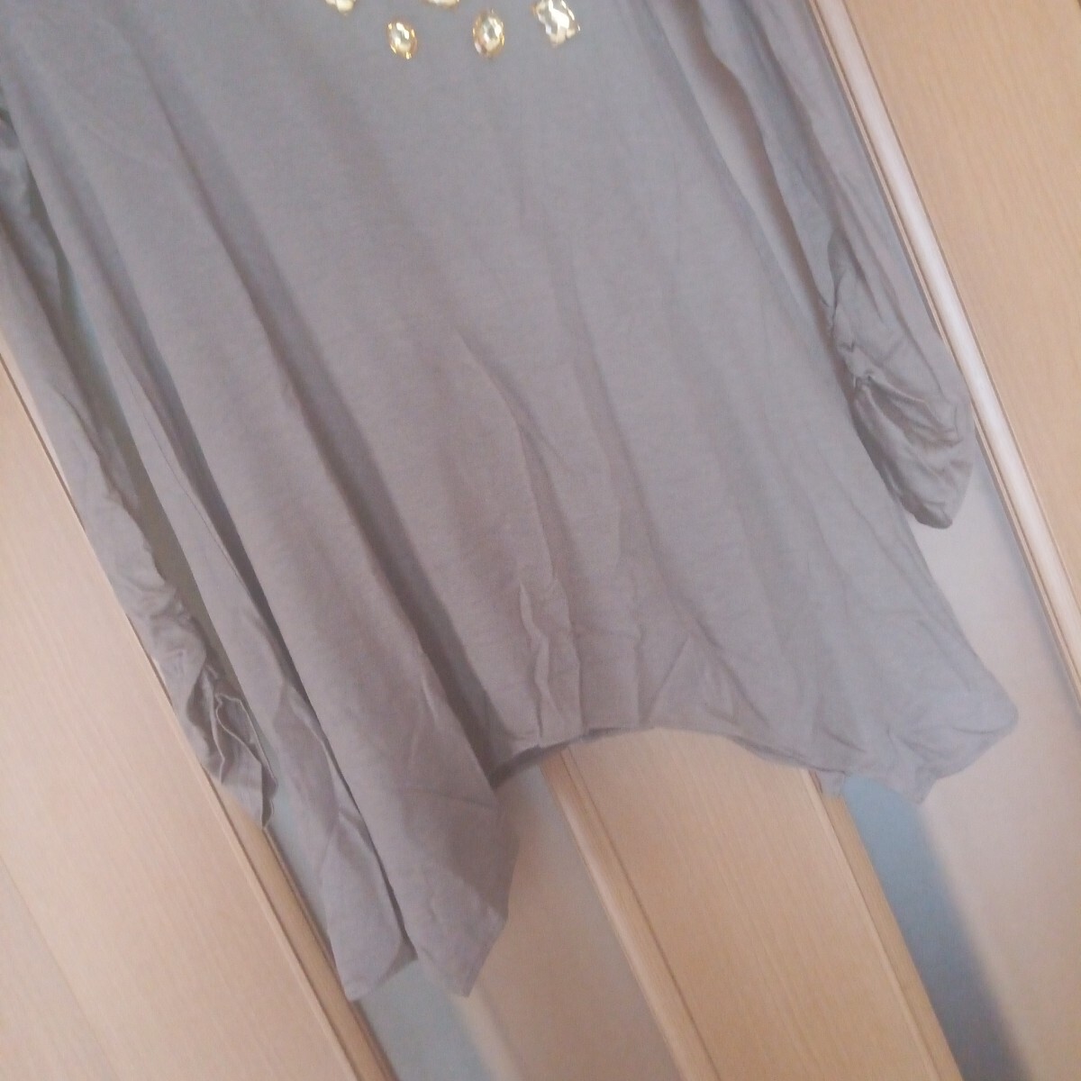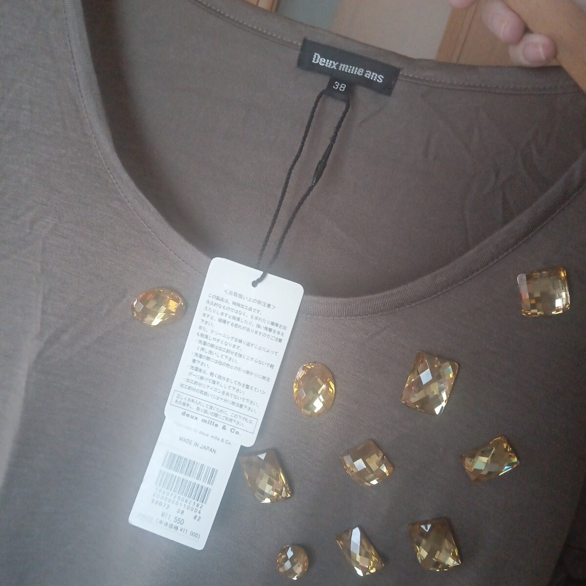 新品未使用タグ付き Deux mille ans ブラウン×イエロービジュー付き アシンメトリー 薄手 長袖カットソー M 收藏