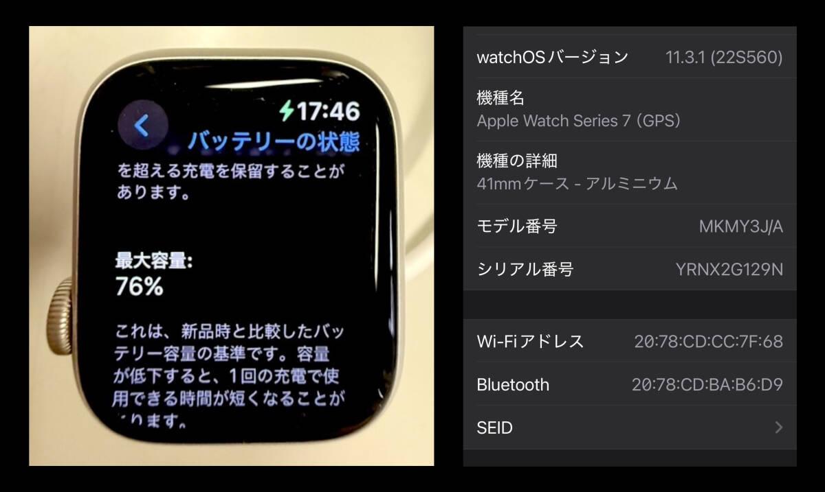 【中古】Apple Watch Series7(GPS)〈シルバー / 41mm / 最大容量76% / 箱付き〉 收藏
