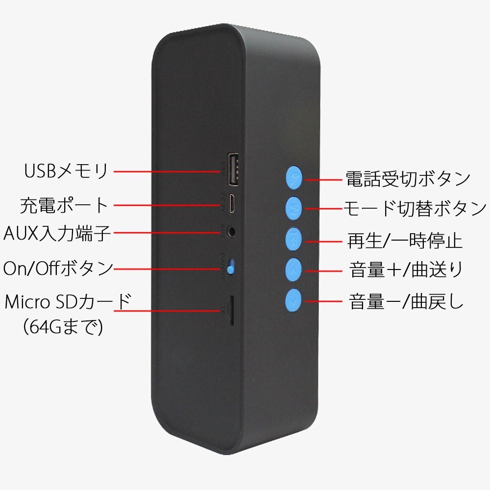 ・再生入力端子:microSDカード、USBメモリー、AUXライン3.5mm(ミニプラグ)