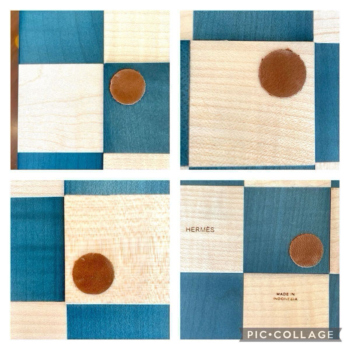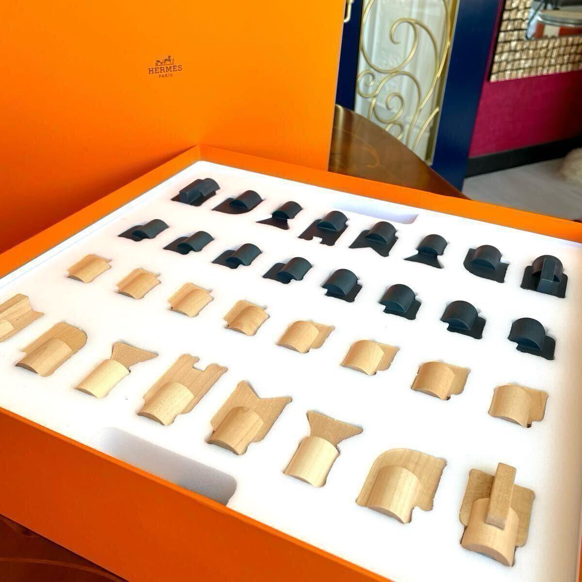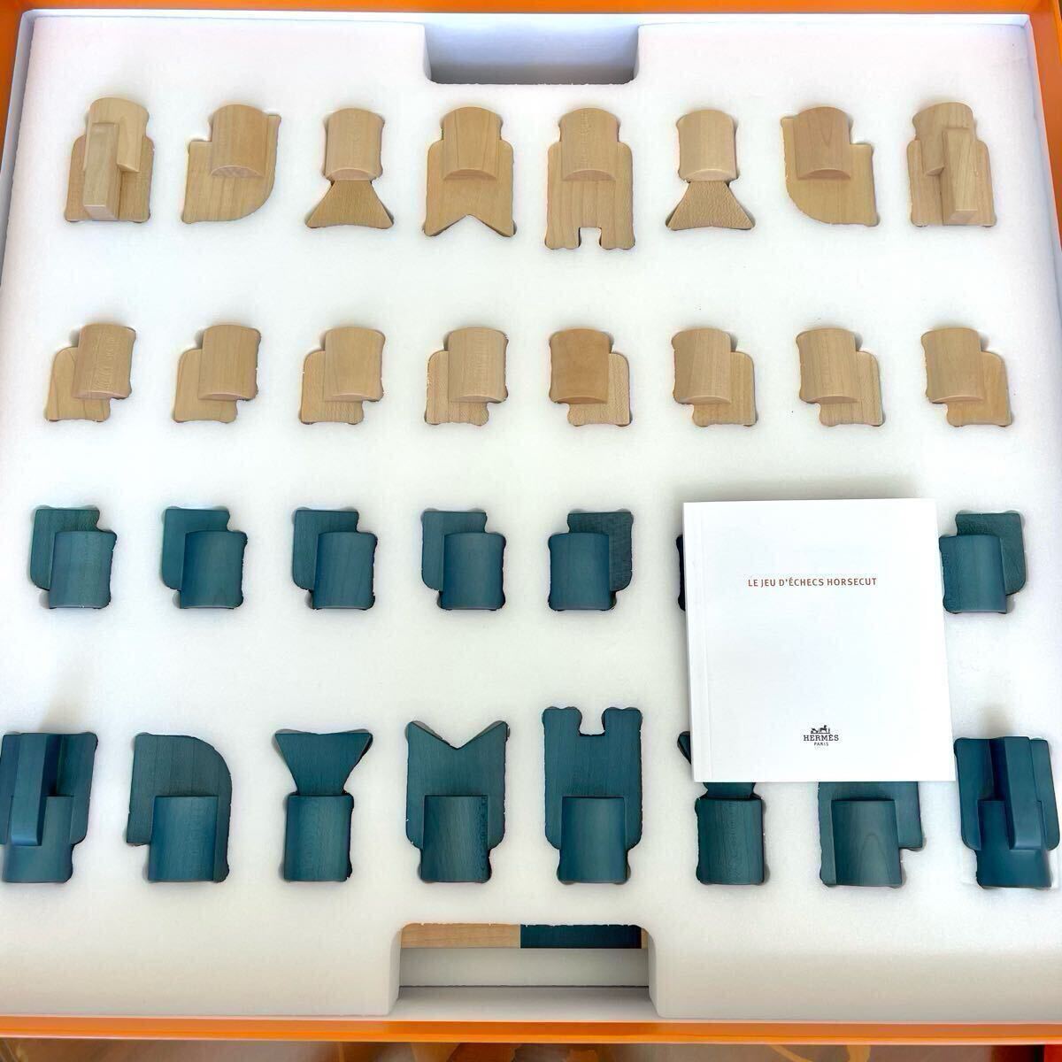 ◆美品◆ HERMES エルメス ホースカット チェス セット プチモデル ナチュラル ウッド グリーン 木目 チェス盤 ボードゲーム 展示品 レア 收藏