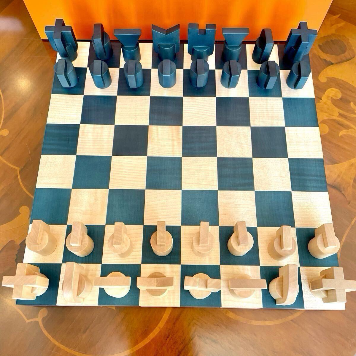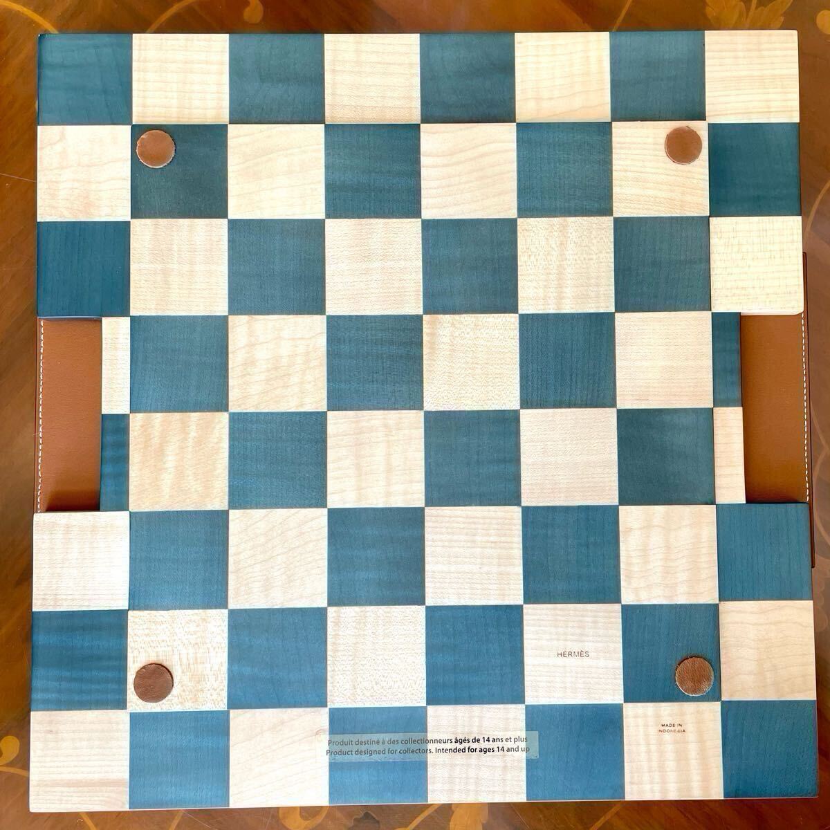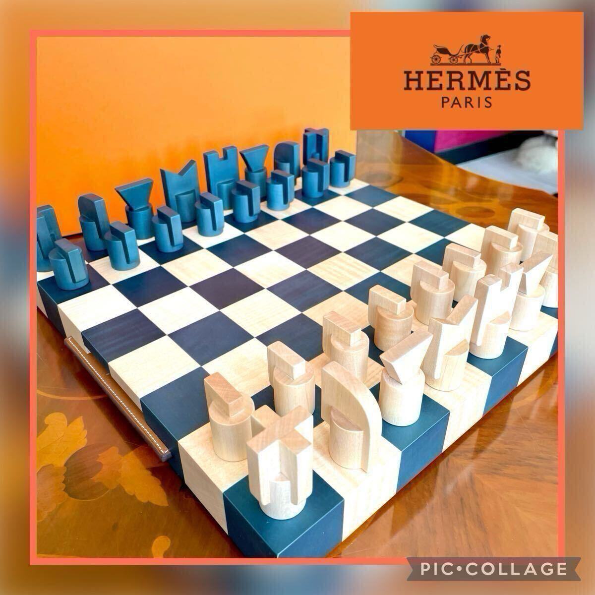 ◆美品◆ HERMES エルメス ホースカット チェス セット プチモデル ナチュラル ウッド グリーン 木目 チェス盤 ボードゲーム 展示品 レア 收藏