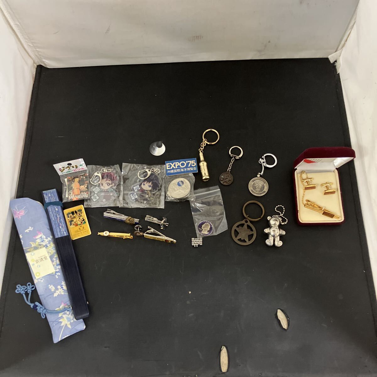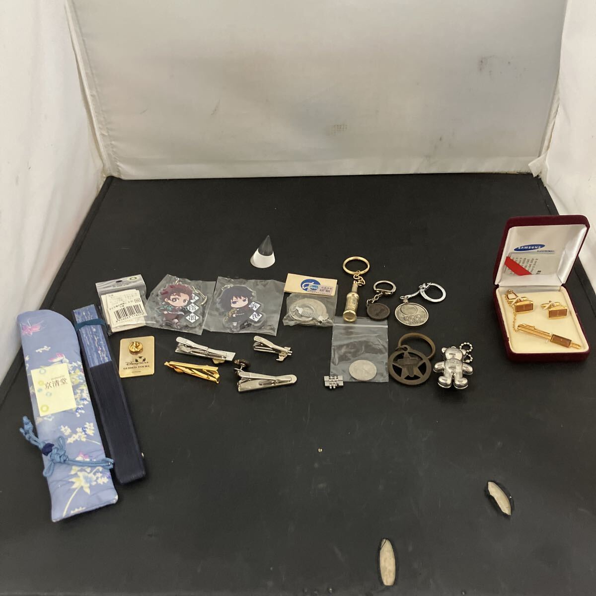 まとめ 現状品 アクセサリー ネクタイピン タイピン カフス メッキ メダル キーホルダー ディズニー ピンバッジ 扇子 雑貨 セット K5319 收藏
