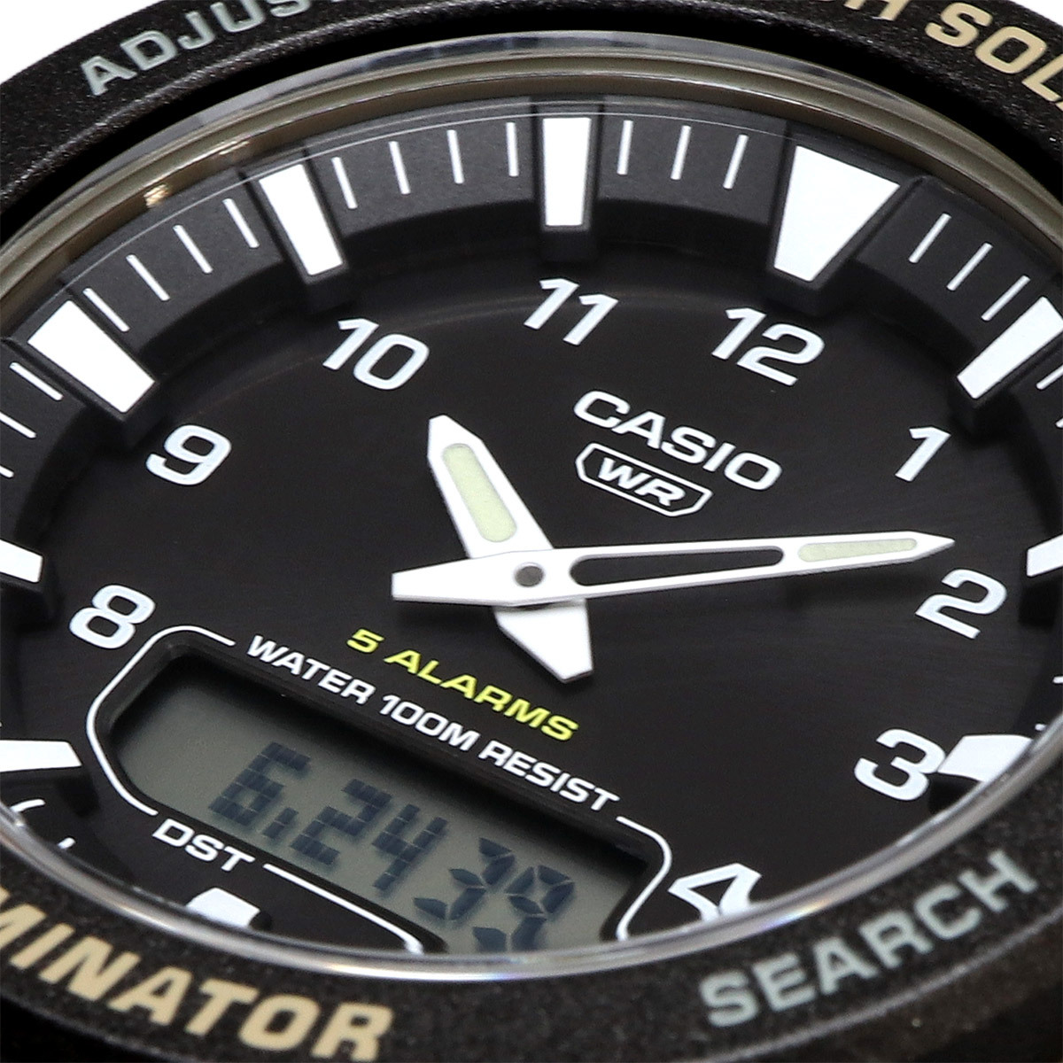 機能 | ● ワールドタイム 31タイムゾーン (48 都市 + 協定世界時)、サマータイムのオン/オフ、ホーム都市/ワールドタイム都市の入れ替え ● 1/100秒ストップウォッチ 計測範囲: 59'59.99'' 計測モード: 経過時間、ラップタイム、スプリットタイム ● 2つのカウントダウンタイマー。2つの異なるペースを交互に繰り返すインターバルトレーニングに使用できます。計測単位:1秒。入力範囲:00'05''~99'55''(1分単位、5秒単位)。その他:オートリピート(リピート回数は1~10回まで設定可能) ● 時刻アラーム5 本・時報 ● LEDライト(残照機能、残照時間切替(1.5秒/3秒付き)) LEDカラー:アンバー ● フルオートカレンダー(2099年まで) ● ボタン操作音のオン/オフ ● 省電力(時計を暗い場所に置いておくと、電力を節約するためにディスプレイが消えます) ● バッテリー電源インジケーター ● 電池駆動時間目安:充電式電池で約10ヶ月(充電後、光に当たらずに通常使用した場合の駆動時間)充電式電池で約23ヶ月(フル充電後、パワーセーブ機能をオンにして暗所で保管した場合の駆動時間) ● 精度:月差±30秒 ● 12/24 時間制表示切替 ● アナログ: 2 針 (時、分 (針は 20 秒ごとに動きます)) デジタル: 時、分、秒、午後、月、日、6 か国語曜日表示 (英語、ポルトガル語、スペイン語、フランス語、ドイツ語、イタリア語) | |||||||||||||||||