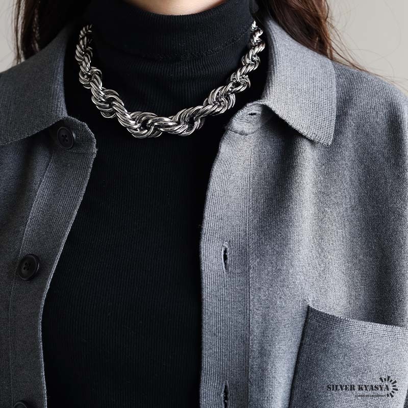 (シルバー) 超極太!ロープチェーンネックレス フレンチロープ ツイスト チャンキー ごつめ シルバー レディース 收藏