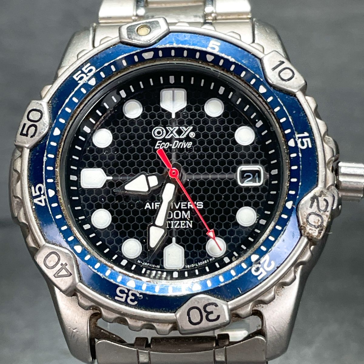 美品 CITIZEN シチズン OXY オキシー エコドライブ 7872-L15022 腕時計 アナログ ソーラー 3針 カレンダー メタルバンド シルバー ラウンド 收藏