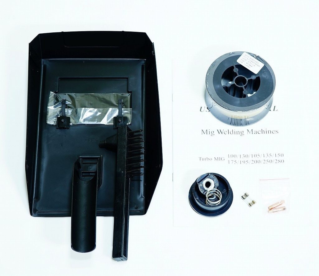 | 商品説明 | 初心者の方でもお手軽に半自動溶接ができるMIG130のセットです! 仕様 ●品番:MIG130 ●電源電圧:単相AC100V/単相AC200V 選択可 ●周波数:50/60Hz ●定格入力:3.6KVA ●メインヒューズ:13A ●出力電流範囲:50~120A MIN/1(50A) MIN/2(80A) MAX/1(100A) MAX/2(120A) ●溶接板厚約:1~6mm ●出力電圧:37V ●適合ワイヤー:0.6/0.8/0.9mm ●ワイヤー送りスピード約:14.5~35(s/mm)(ダイヤル調整可) ●ワイヤーリール径:100mmまで ●定格使用率:120A/10%・60A/35% ●保護度:IP21 ●絶縁クラスH ●本体寸法約:360㎜×175㎜×300㎜ ●本体重量約:19kg ●本体色:ブラック・ブルー・オレンジ 選択可 セット内容 ★溶接機本体(トーチ(約2.7M) アースケーブル(約3M) 電源線(約2.6M)) ★コレクトチップ・ヒューズ ★ワイヤー取り付け部品 ★フラックス入りスチールワイヤー(0.9mm/0.45kg) ★溶接面 ★ブラシ ★取説(英語) ※トーチやアース配線は通常1.5m程ですが、実使用では短く感じる場面が多いので特注でロング仕様にしております。 ※単相200V仕様機は単相100V仕様機よりも力強い溶接が可能です! こちらは初心者の方でもお手軽に使える半自動溶接機になります。 こちらMIG130半自動溶接機はノーガス専用となります。 ガスを使わない溶接機なので屋内や屋外を問わず色々な所で使用ができ、溶接初心者の方にとてもお勧めな一台です! ノーガス機はワイヤーをフラックス入りの物を使い溶接をします。(フラックスがガスの代わりにシールドします) ガス溶接は風の影響を受けるので屋外には不向きになりますが、ノーガス溶接はフラックス入りワイヤーを使うので屋外でも向いております。 鉄やステンレスなどお手軽に溶接が可能になります! 半自動溶接はTIG溶接の様な綺麗なビード仕上げには向きませんが、溶接スピードが速いの溶接距離が長かったり同じ物を何個も作る様な場合にはとても有効です。 消耗品のチップ・アダプターカバー・ワイヤーなどは色々と出品をしておりますので溶接機と一緒にお選び頂ければ幸いです。 ※※本機の電源コンセントは100V/200V共に便利な家庭用差し込み式となっておりますが、 本機は流れる電流が大きいので使用頻度・使用出力が高い御使用の場合は一般家庭用の15A差し込みコンセントでの御使用はお勧めは致しませんので御注意願います。 高出力使用がメインの場合は基本的にはコンセントは切断して配線を直結させての御使用をお勧め致します。(緑色系配線はアース用配線です。) よくある御質問集 Q:電源やブレーカー容量に関して教えてください A:単相100V機で出力最大使用するにはブレーカーは40Aが必要となります。単相200V機の場合はブレーカーは20Aからをお勧め致します。 Q:消耗品や部品の取り寄せ可能でしょうか? A:当方が溶接機を販売しております御客様でしたら可能な限りどんな部品でも手配出来るように対応はしております。 Q:使用後に機械が突然動かないのですが? A:本機はオーバーヒート保護回路がついておりますので本体温度がある一定を越えますと本体が止まりますので、その際は本体が冷えるまでお待ち下さい。 また、本体保護のためヒューズ切れしている際はヒューズの交換をして下さい。 こちらは輸入商品になりますが、産業機器を幅広く製造・輸出している国際的なメーカー様(CE取得等)にて製造されていますので信頼度の水準は高い製品となります。 海外製品は同じ機種・ネーミングで見た目が全く同じでも中身が粗悪等、どこで作っているのか分からない物も意外に多く流通しておりますので御注意下さい。 こちら製品は当方が製造工場様に直接交渉をして製造をして頂いていますので、別途にはなりますがこの先長く御使用されたい方などに対し故障時の部品供給や消耗品類の供給などの御相談にもある程度は対応させて頂く事も可能です。 輸入製品はどうしても売りっ放しになる傾向が多いので、この辺の御不安を少しでも払拭して頂き良い物を安くそして少しでも長く御使用して頂ければ幸いだと思います。 【その他・御取引詳細に関して】 ◎御落札後は100V仕様又は200V仕様のいずれか及びカラーの御希望をお申し出を願います。 (※お申し出が無い場合はこちらの判断で選択をして出荷を行います) ◎商品到着後1週間は初期不良の対応をさせて頂きます。 (初期不良の場合は交換又は部品供給等の対応を致します。) ◎部品供給の場合は部品輸入等で多少御時間を頂く場合が御座います。 ◎大変恐縮ですが、商品対応は可能ですが交換・供給等に掛かる送料などは御負担をして頂きます。 ◎また、定格使用を超える使い方(パンク)や通常では考えられない様な使い方及び劣悪な環境下での御使用等、製品に起因しない原因での破損等は対応外となります。 ◎初期不良対応は製品に対してだけなので、その他の付随する損害等に関しては当方は一切の責任を負いません。 ◎御取り引き後は返品・返金は基本的に不可になります。 ◎こちらは輸入商品ですので日本製品に比べて仕上げが甘い点や細かな傷・外箱汚損等も